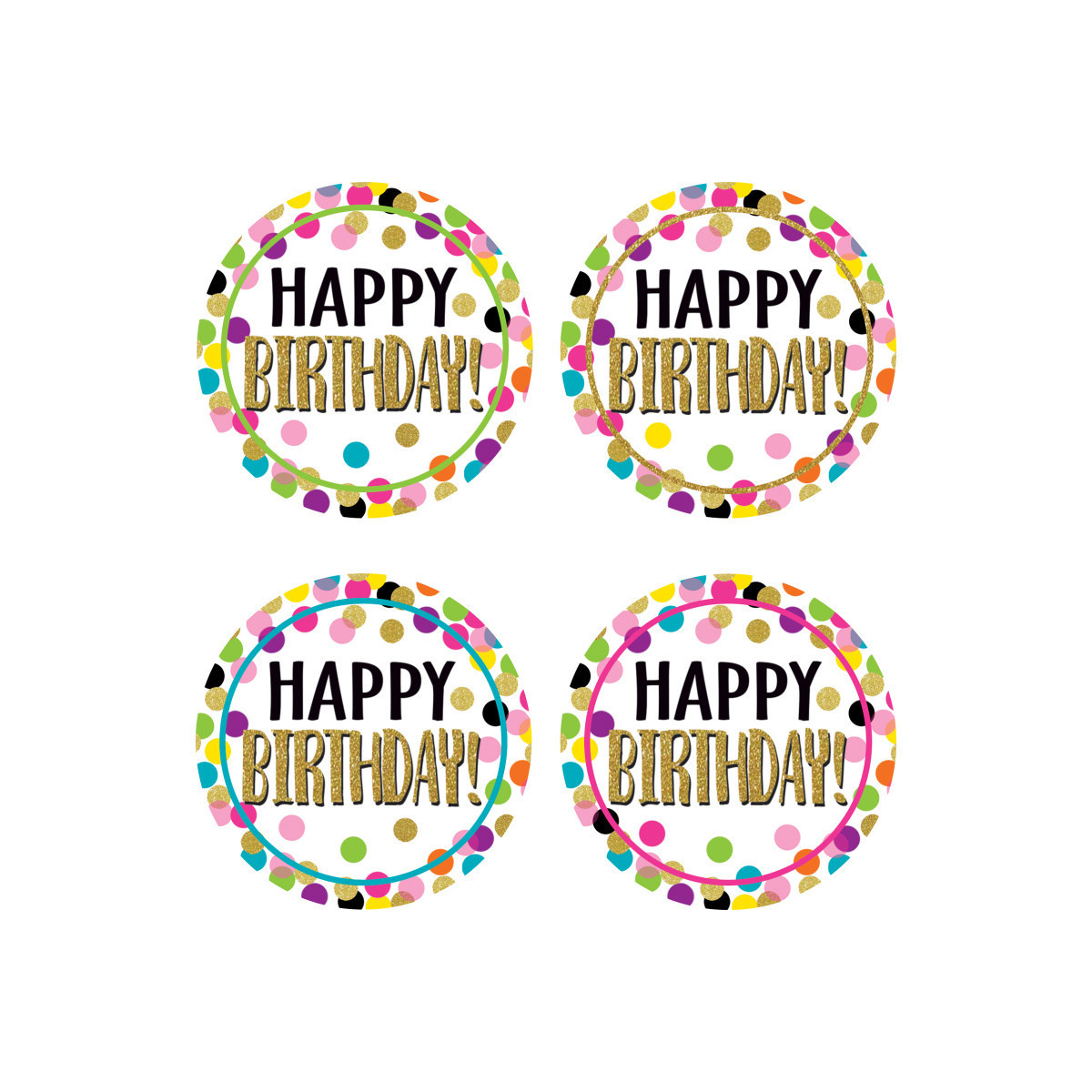 Use these fun Confetti Happy Birthday Wear 'Em Badges to make the birthday boy or girl feel special on their birthday. Each self-adhesive badge is 2-3/8". Each pack includes 32 badges.