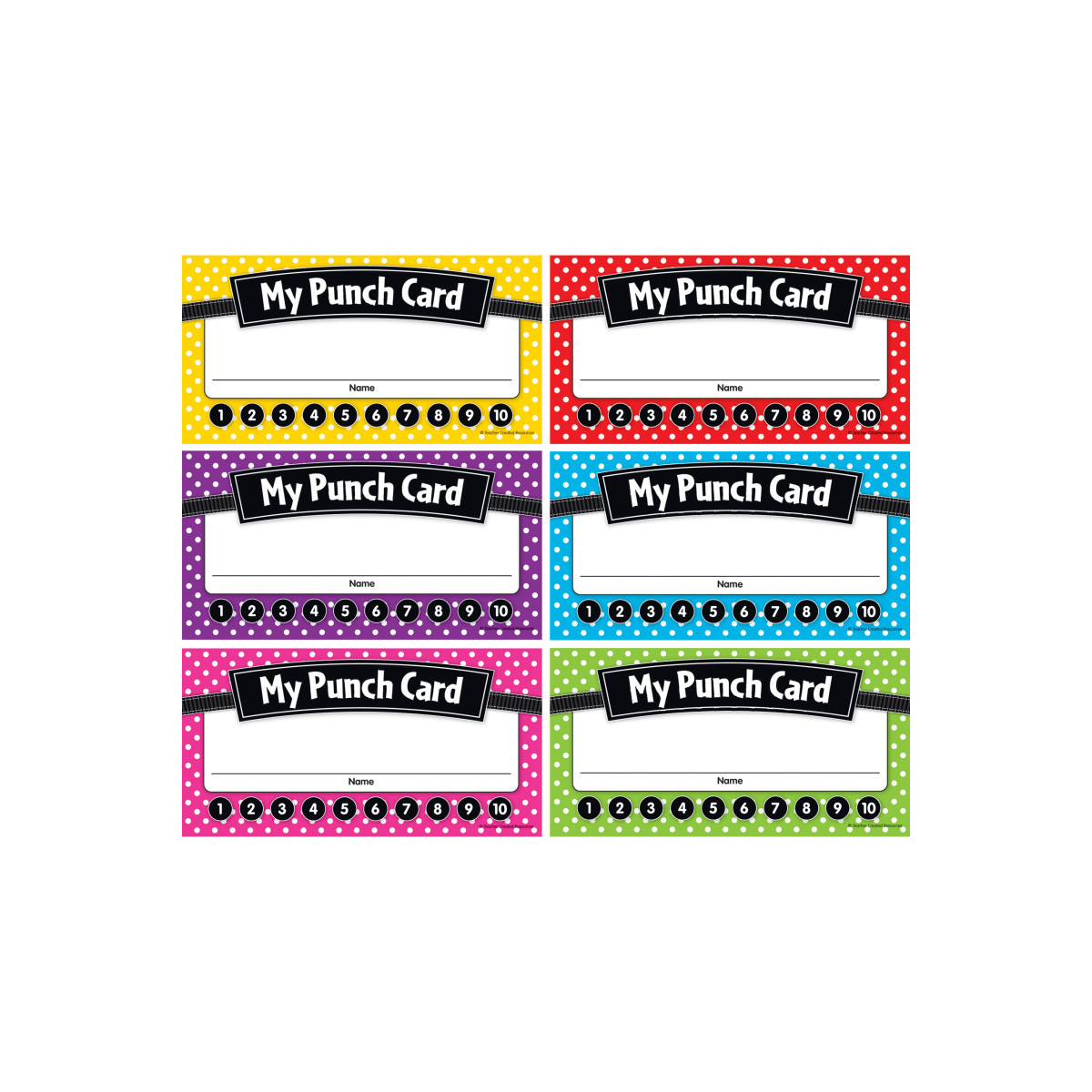 Use these colorful punch cards to motivate students to complete tasks, demonstrate good behavior, and achieve goals. When all of the punches are complete reward their accomplishment with a special treat! Each pack includes 60 cards.
