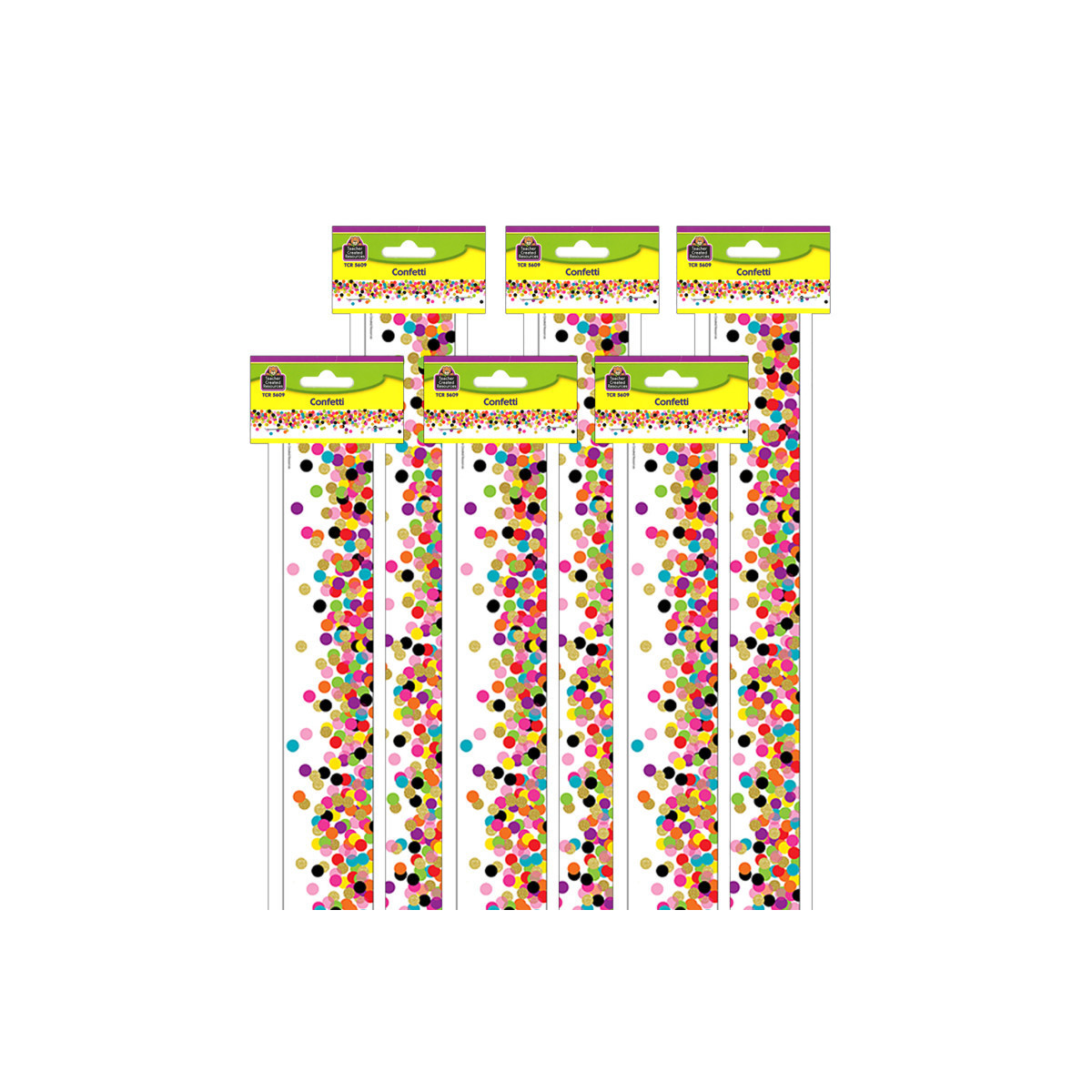 Use colorful border trim to liven up your classroom! Create fresh looks for bulletin boards, windows, walls, and class projects. Mix and match with coordinating products (stickers, notepads, awards, etc.) for a classroom theme. Each pack has 12 pieces (3'' x 35'') for a total length of 35 feet of trim! Sold as 6 packs for a total of 210 feet of border trim.