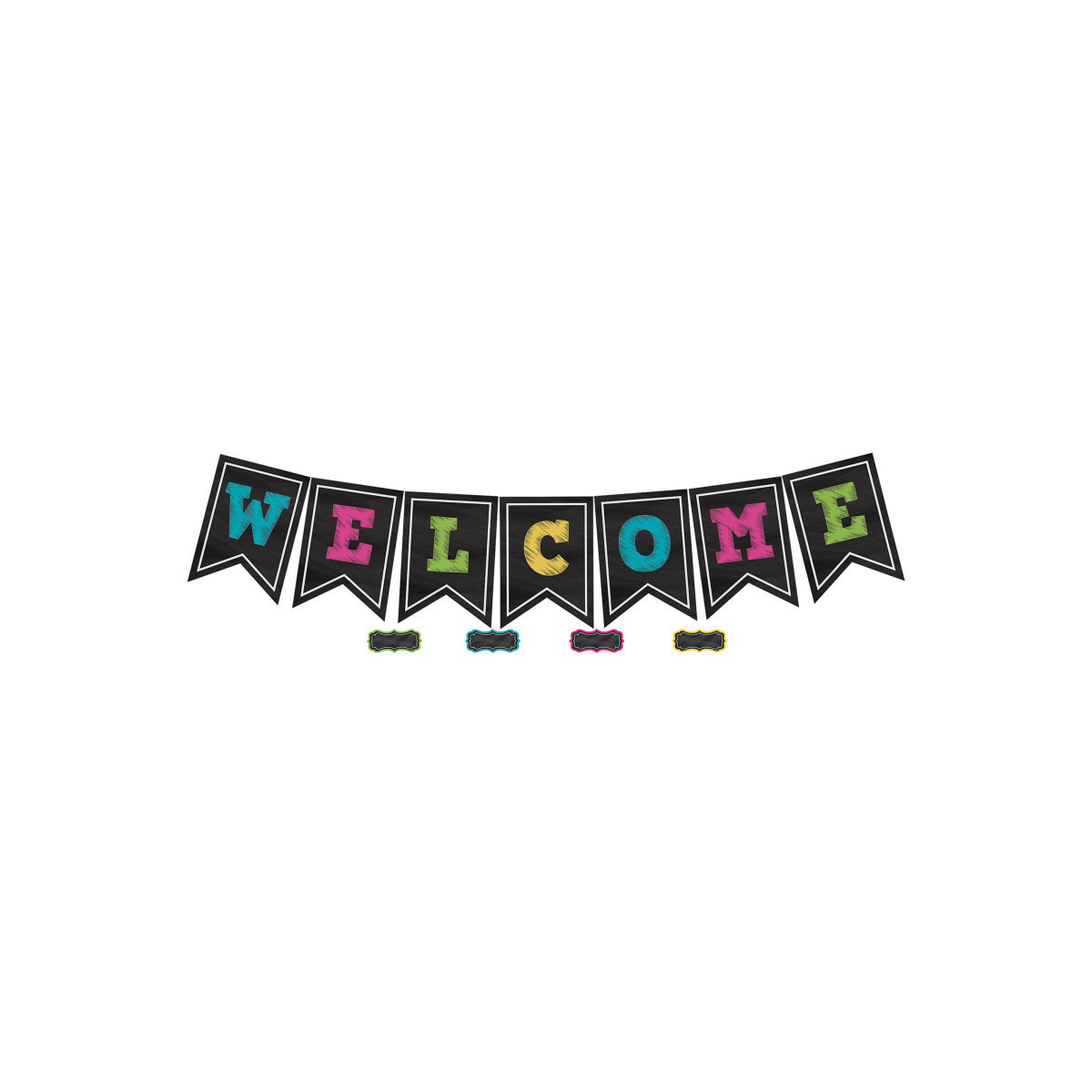 Use GIANT letters to create a welcome sign that no one can miss! Each pennant is 9-1/2" x 13-1/2". Also includes 41 multi-purpose cards and a teacher's guide with suggested activities. 48 pieces total.
