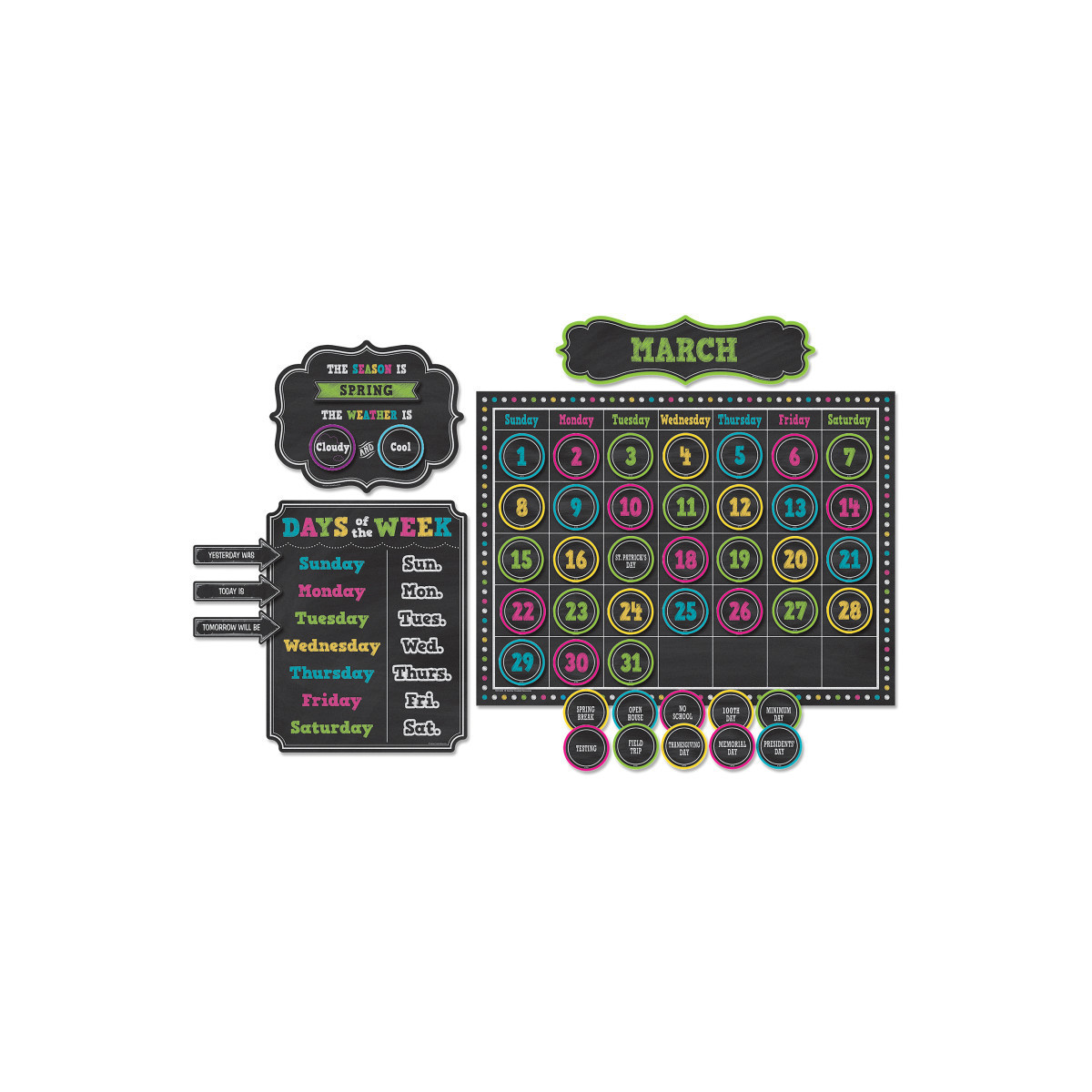 Comes with easy-to-read number pieces, colorful monthly headers, and additional pieces for holidays and special occasions as well as yesterday, today, and tomorrow