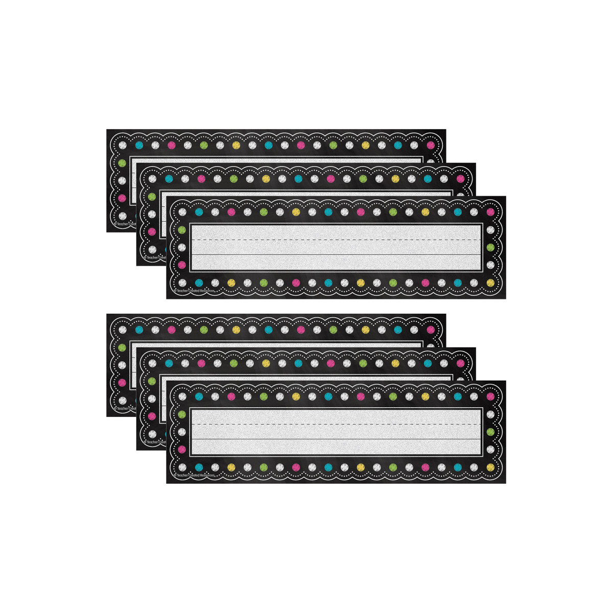 Use them to help teachers and substitute teachers learn students' names. Use them to label learning centers, storage areas, and portfolio collections. Laminate them for use as vocabulary flash cards, or work bank labels. Measures approximately 3.5" x 11.5". Each pack includes 36 pieces. Sold as 6 packs for a total of 216 name plates.