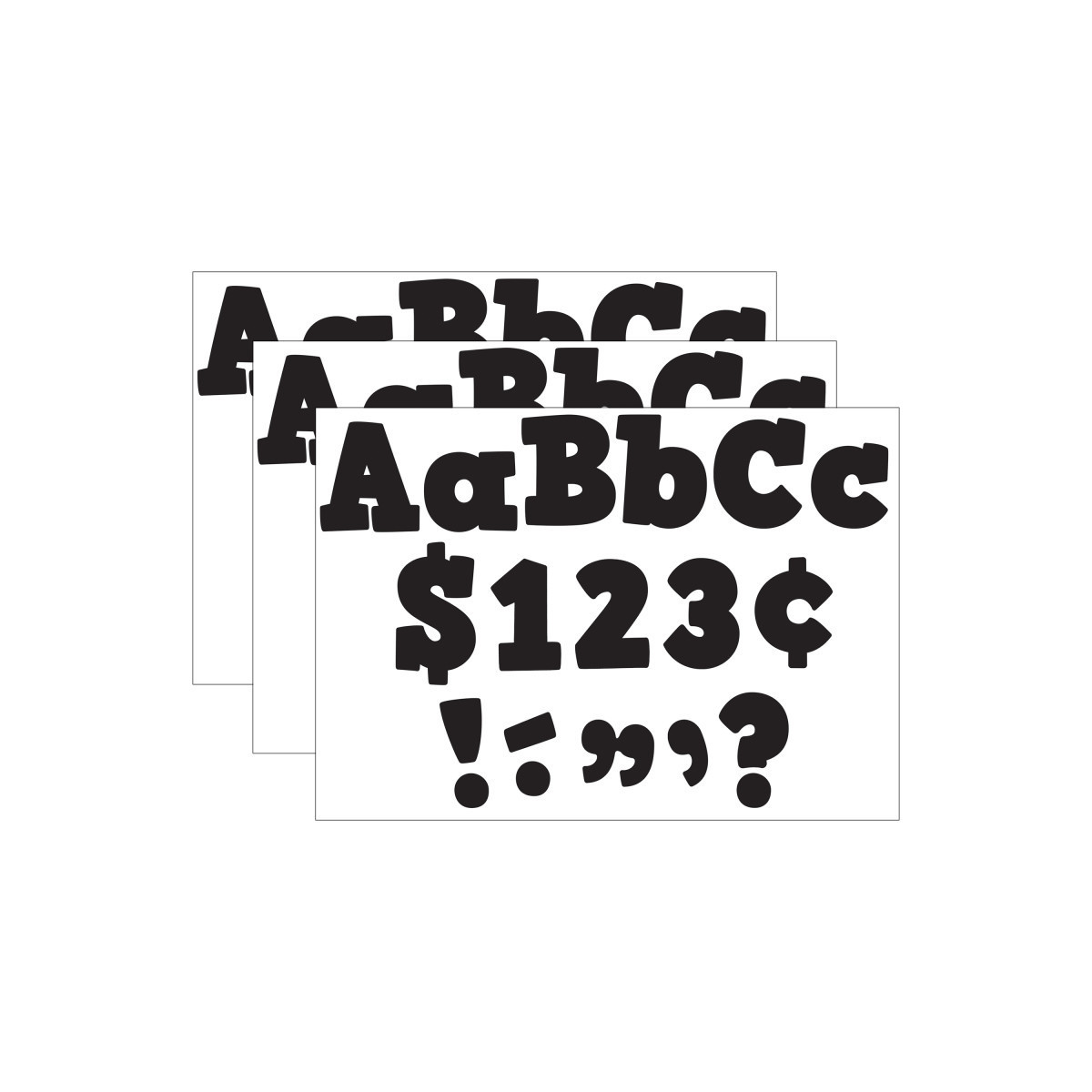 Use these letters to create bulletin boards, classroom centers, signs, banners, and other displays. They punch out easily and are coated for durability. The colors and designs coordinate with popular decorative products from Teacher Created Resources. Each 230-piece pack includes: 61 uppercase letters, 95 lowercase letters, 20 numbers (0-9), 40 punctuation marks and 14 Spanish accent marks. Sold as 3 packs for a total of 690 characters.