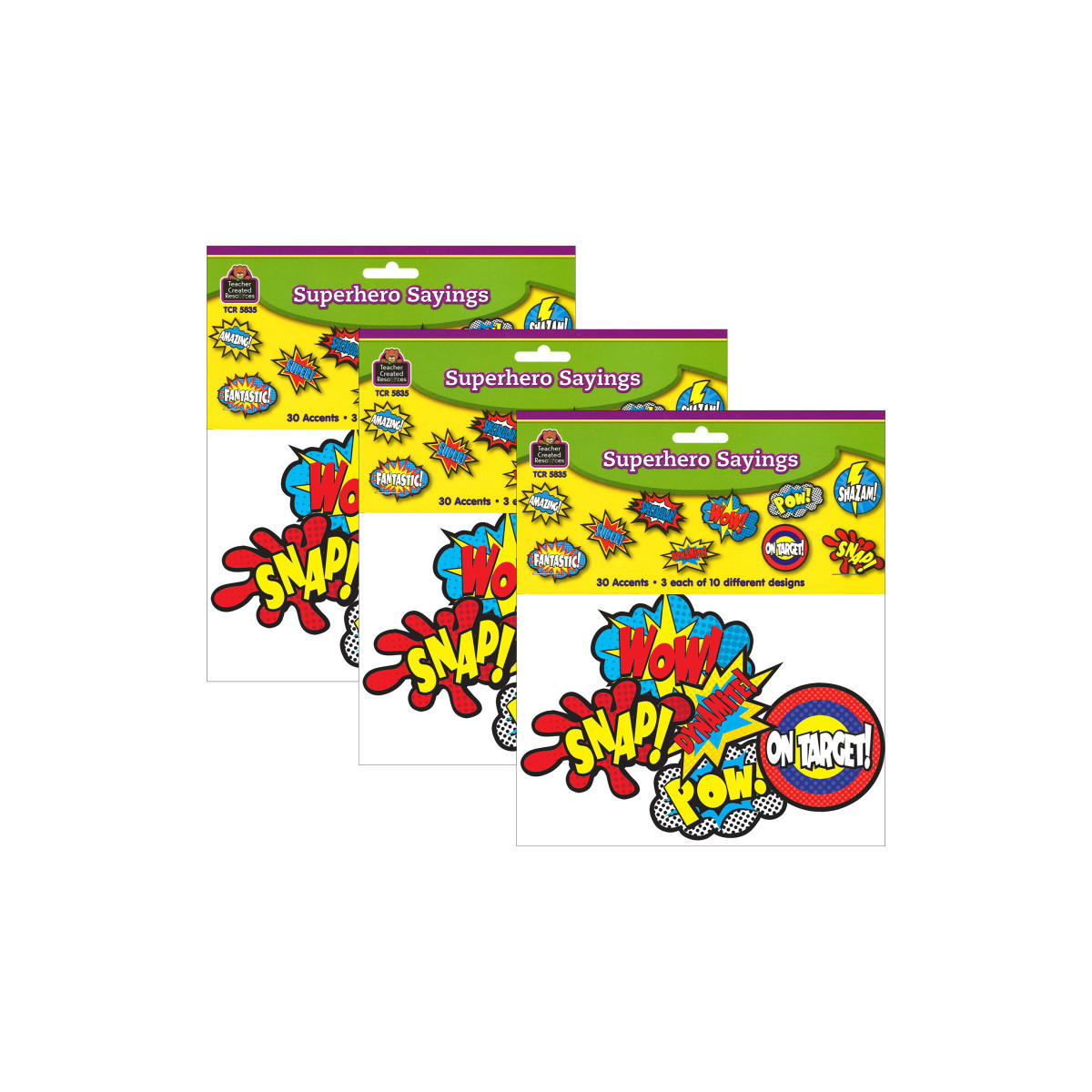 Use this decorative artwork to dress up classroom walls and doors, label bins and desks, or accent bulletin boards. Each accent measures approximately 6". Each pack contains 30 accents: 3 each of 10 designs. Sold as 3 packs for a total of 90 accents.