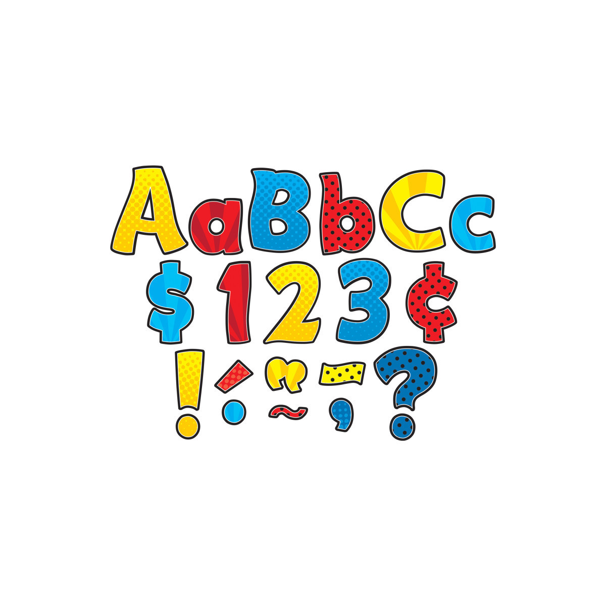 Use these letters to create bulletin boards, classroom centers, signs, banners, and other displays. They punch out easily and are coated for durability. The colors and designs coordinate with popular decorative products from Teacher Created Resources.