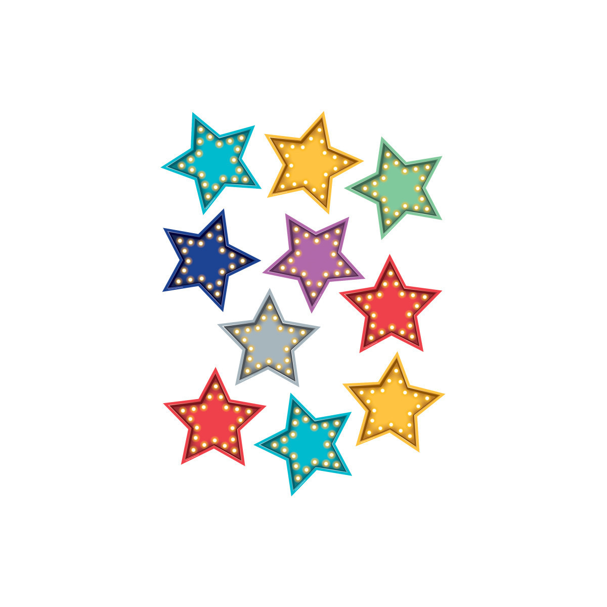Use this decorative artwork to dress up classroom walls and doors, label bins and desks, or accent bulletin boards. Pieces measures approximately 6". Each pack includes 30 accents in 7 colors: 6 red, 6 yellow, 6 light blue, 3 dark blue, 3 gray, 3 purple, 3 green.