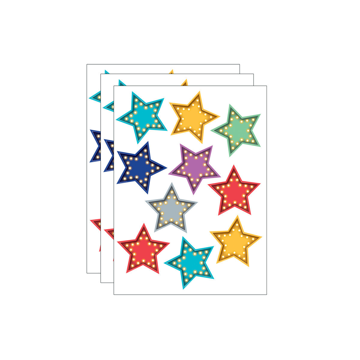 Use this decorative artwork to dress up classroom walls and doors, label bins and desks, or accent bulletin boards. Pieces measures approximately 6". Each pack includes 30 accents in 7 colors: 6 red, 6 yellow, 6 light blue, 3 dark blue, 3 gray, 3 purple, 3 green. Sold as 3 packs for a total of 90 accents.