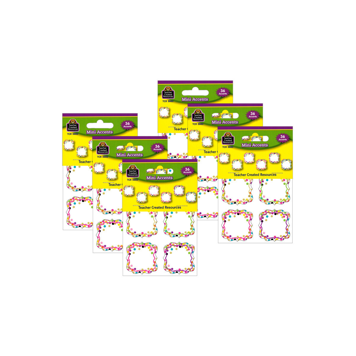 Have fun decorating with these colorful little pieces that measure about 2-5/8". Use them to accent displays, to fill in monthly calendars, or as pieces for learning games like sorting, patterning, and graphing. 6 colors. Measures approximately 2-5/8" x 2-5/8". Each pack includes 36 mini accents. Sold as 6 packs for a total of 216 mini accents.