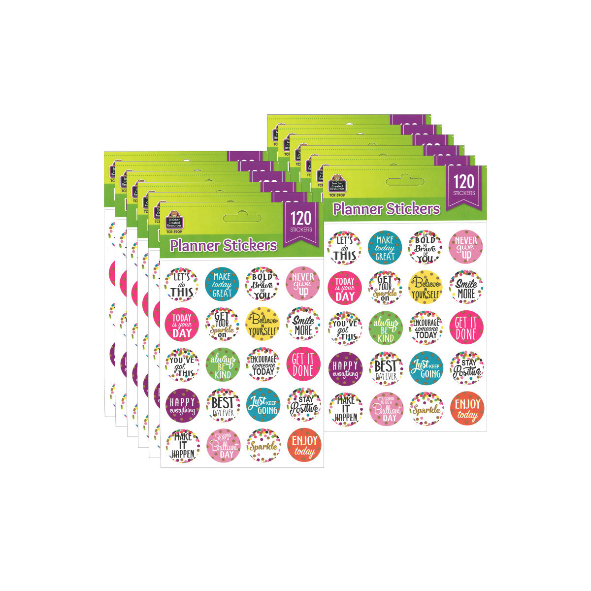 Give your lesson planner the royal treatment with these stunning planner stickers. Keep your lessons decluttered and beautifully organized by using the tracker labels and reminder tags. Apply accents and embellishments to help highlight your important notes, and use the positive sayings to keep yourself motivated throughout the week. Each pack includes 120 stickers. Sold as 12 packs for a total of 1440 stickers.