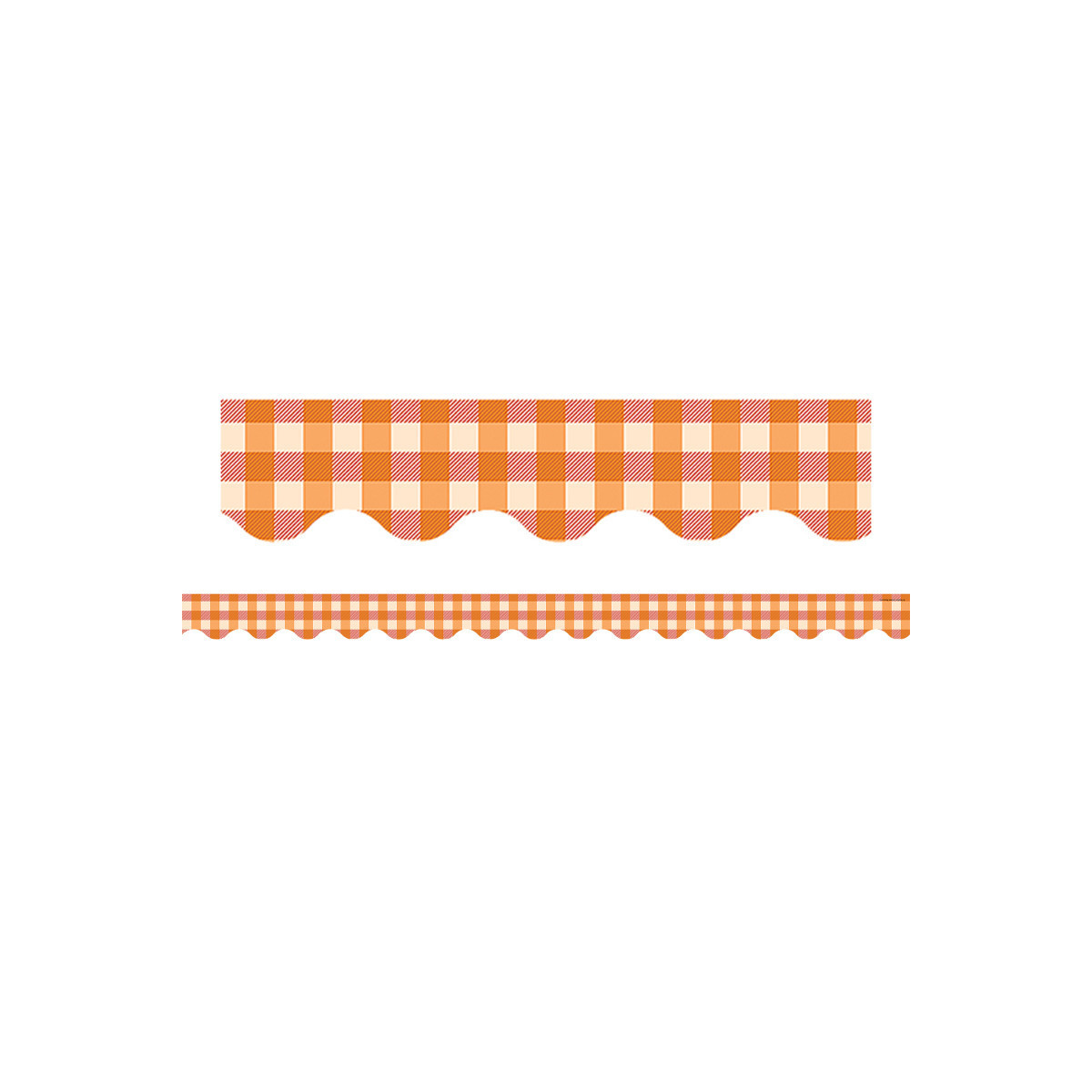 - Orange Gingham Scalloped border trim to liven up your classroom