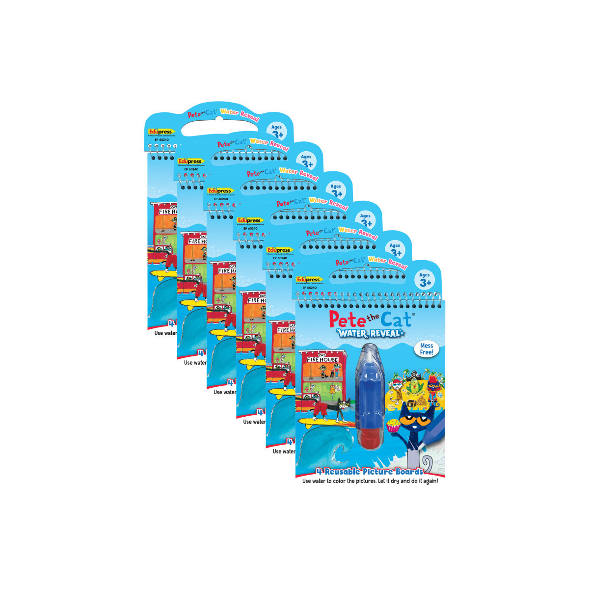 Sold as 6 sets, each set includes 4 reusable picture boards and 1 refillable water pen.
