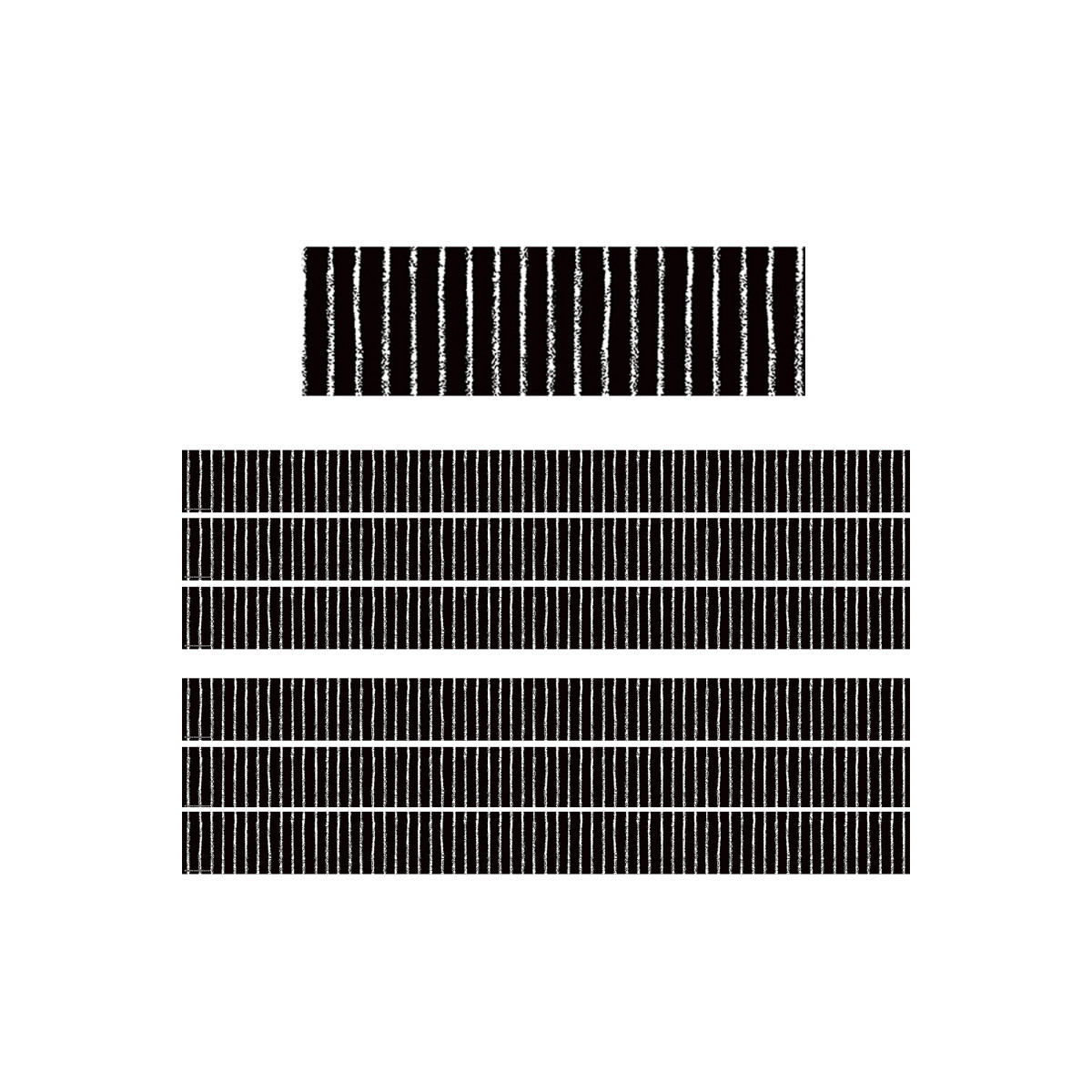 Use this black with white pinstripes border trim to liven up your classroom! Create fresh looks for bulletin boards, windows, walls, and class projects. Mix and match with coordinating products (stickers, notepads, awards, etc.) for a classroom theme. Each pack has 12 pieces (3" x 35") for a total length of 35 feet of trim! Sold as 6 packs for a total of 72 strips (210 feet).