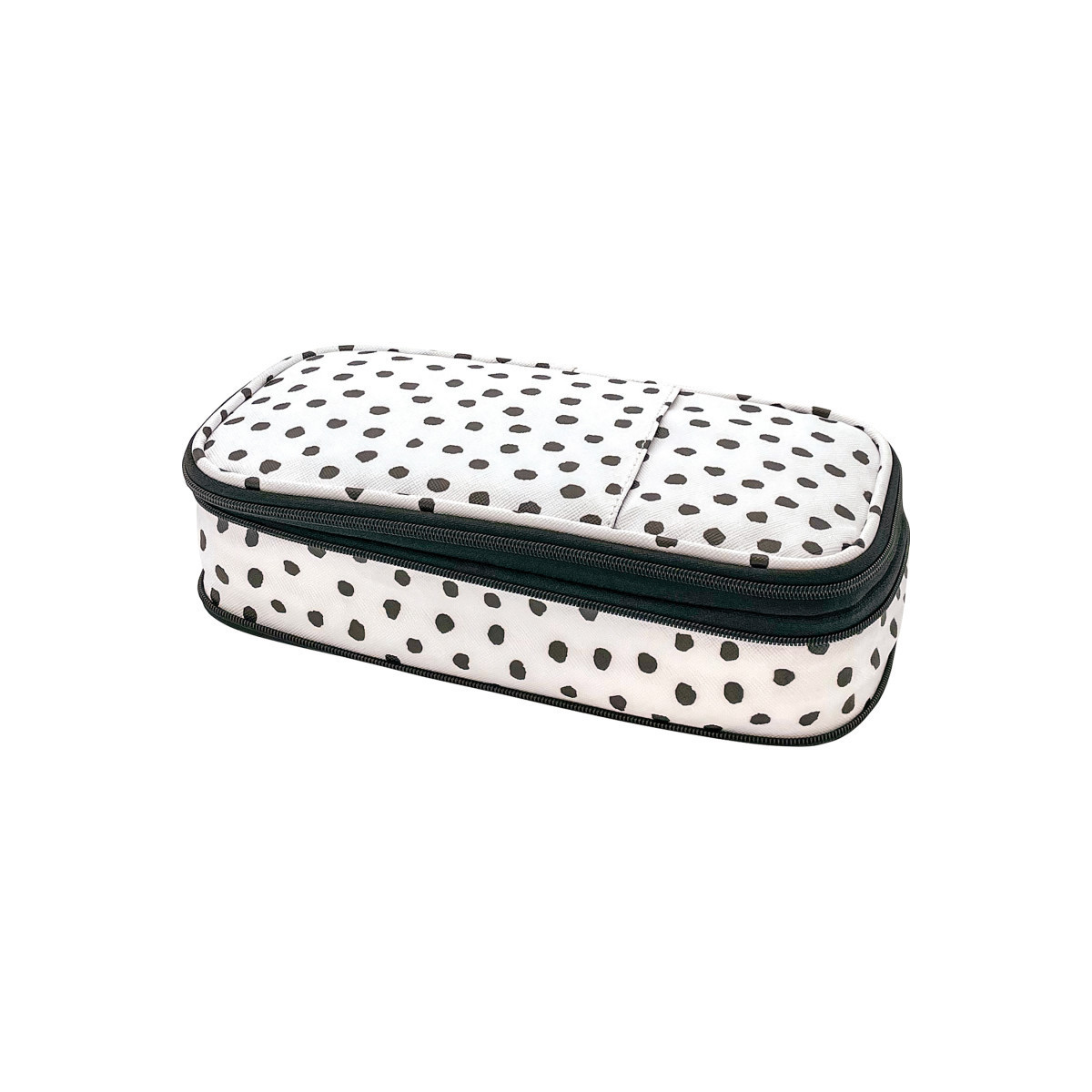 The stylish pencil case can expand and hold approximately 50 pens or pencils. Case is sturdy, durable, and has multiple zippers and pockets. Measures 9" L x 4-1/4" W. Wrap-around expansion zipper allows thickness to go from 1-3/8" to 2-1/2" in an instant! Front pocket keeps frequently used item easily accessible. Store small items in a zippered mesh compartment. 5 elastic pen slots keep pens or brushes from moving.