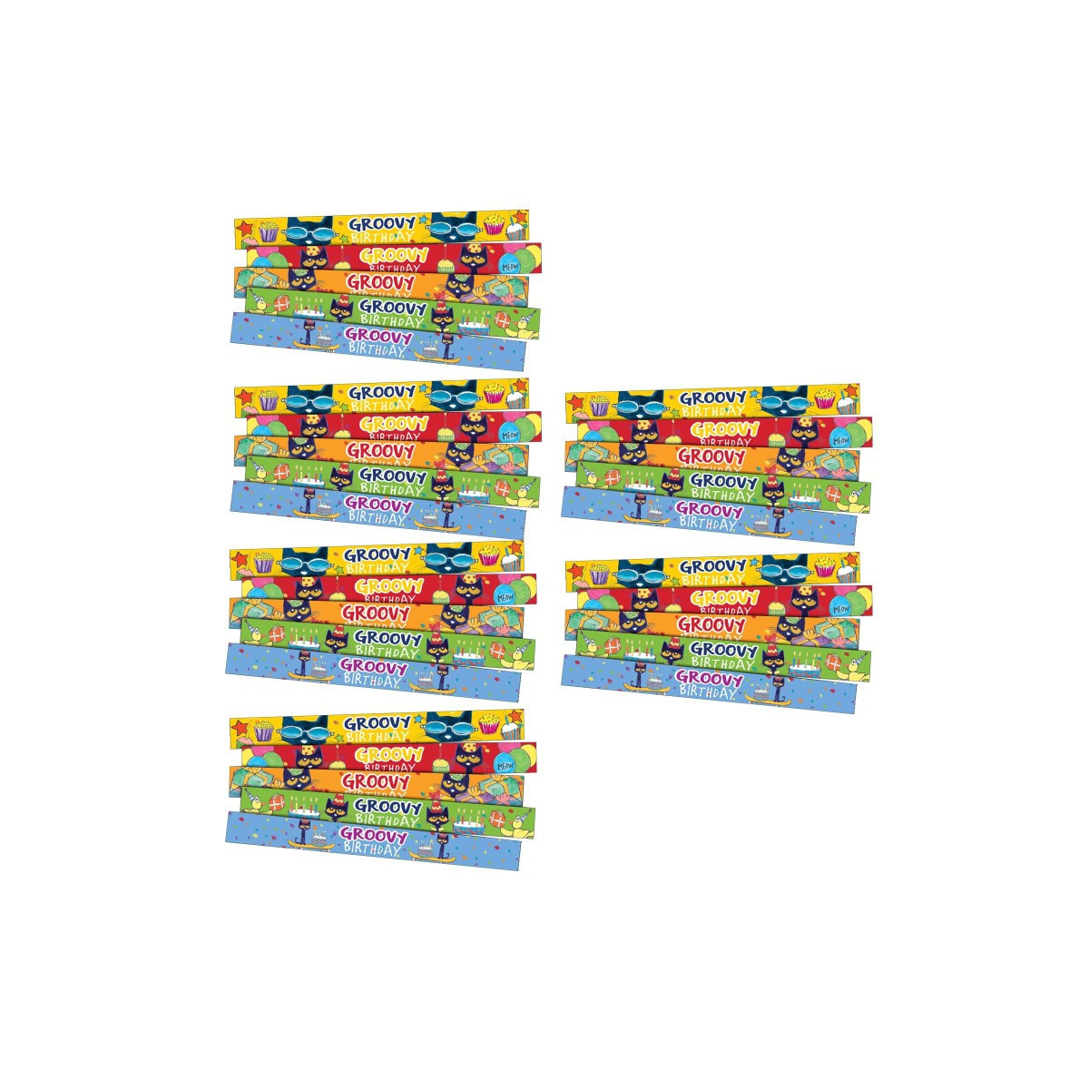 Slap bracelets fit most wrist sizes and are a fun way to reward good behavior or build awareness for special events. Stuff these in birthday goody bags for student's birthdays! Bracelets measure 9-1/2" x 1". Each pack includes 10 bracelets, 2 each of 5 different designs. Sold as 6 packs for a total of 60 bracelets.
