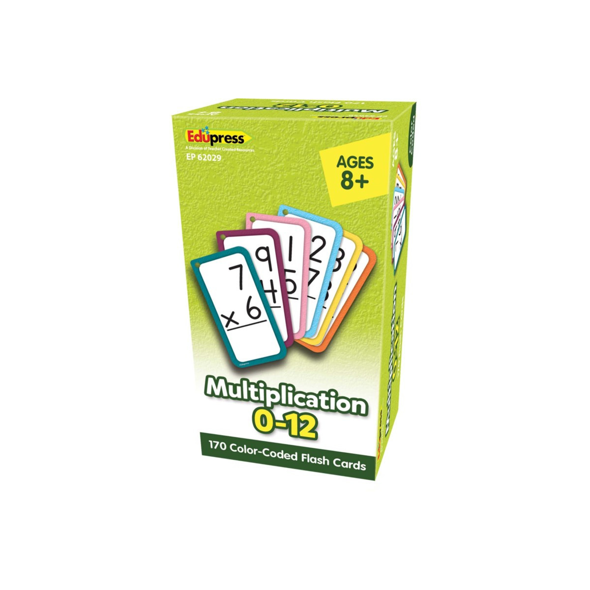 Teach and review multiplication facts individually, in groups, or with the whole class! Each flash card set contains a collection of full-color, high-interest student cards as well as instructions and tips for the teacher or parent, suggested activities, and additional blank cards. Each card has a hole in the top corner that can be fit with a ring or string to help with organization and storage. Additionally, each card has one corner that is shaped differently than the others. By lining up the non-rounded corners, the flash cards can quickly be faced in the same direction. When applicable, flash card sets include answers in small print on the reverse side of each card. Each card measures 3-1/8" x 5-1/8". Each set includes 170 double-sided cards.