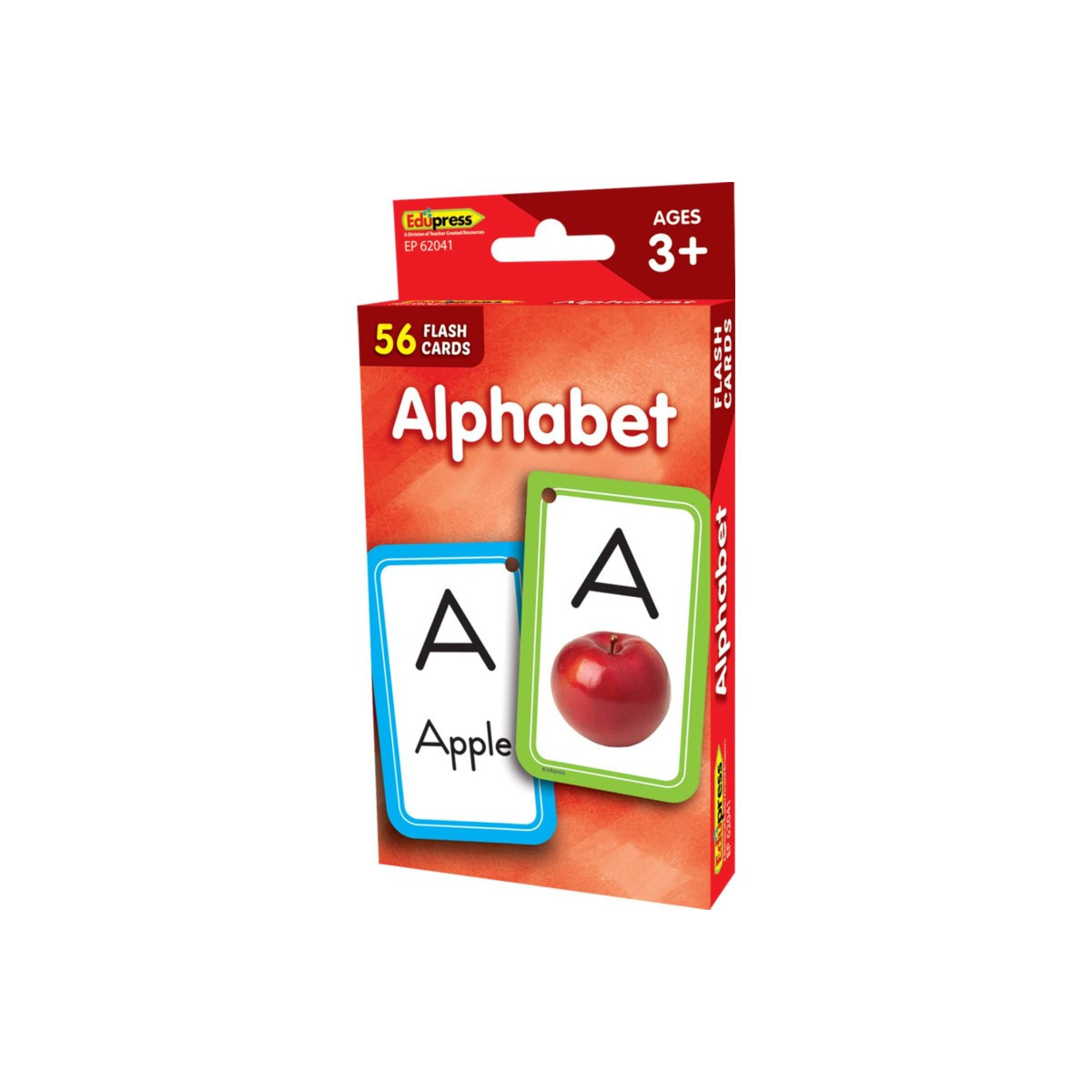 Teach and review the alphabet individually, in groups, or with the whole class! Each flash card set contains a collection of full-color, high-interest student cards as well as instructions and tips for the teacher or parent, suggested activities, and additional blank cards. Each card has a hole in the top corner that can be fit with a ring or string to help with organization and storage. Additionally, each card has one corner that is shaped differently than the others. By lining up the non-rounded corners, the flash cards can quickly be faced in the same direction. When applicable, flash card sets include answers in small print on the reverse side of each card. Each card measures 3-1/8" x 5-1/8". Each set includes 56 double-sided cards.