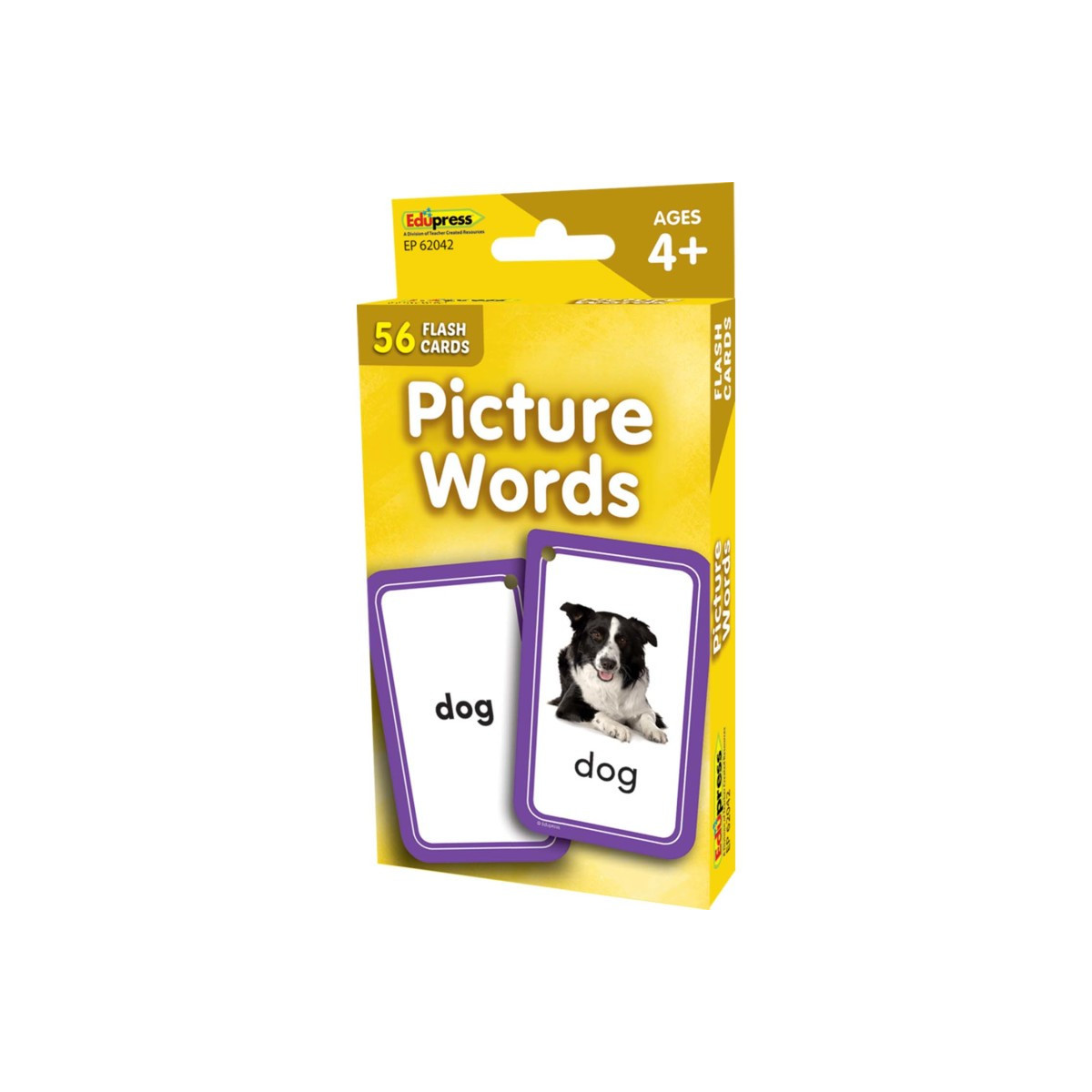 Teach and review picture words individually, in groups, or with the whole class! Each flash card set contains a collection of full-color, high-interest student cards as well as instructions and tips for the teacher or parent, suggested activities, and additional blank cards. Each card has a hole in the top corner that can be fit with a ring or string to help with organization and storage. Additionally, each card has one corner that is shaped differently than the others. By lining up the non-rounded corners, the flash cards can quickly be faced in the same direction. When applicable, flash card sets include answers in small print on the reverse side of each card. Each card measures 3-1/8" x 5-1/8". Each set includes 56 double-sided cards.