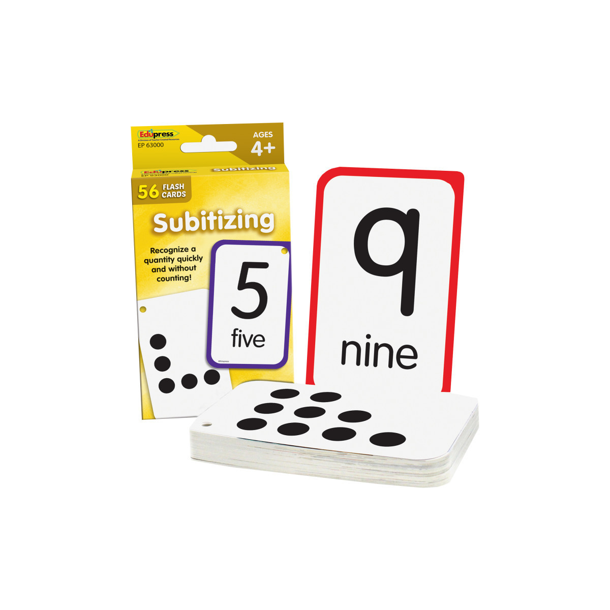Each flash card set contains a collection of full-color, high-interest student cards as well as instructions and tips for the teacher or parent, suggested activities, and additional blank cards. Each card has a hole in the top corner that can be fit with a ring or string to help with organization and storage. Additionally, each card has one corner that is shaped differently than the others. By lining up the non-rounded corners, the flash cards can quickly be faced in the same direction. When applicable, flash card sets include answers in small print on the reverse side of each card. Each pack includes 56 double-sided flash cards measuring 3-1/8" x 5-1/8".