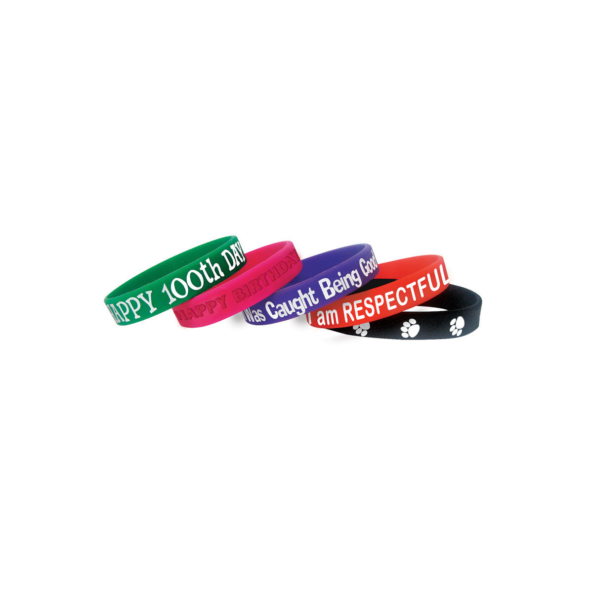 Build awareness for special people or events with wristbands made of silicone. Each pack contains 10 wristbands, two each of five different designs. Latex Free. Tested and compliant with all Consumer Product Safety Commission standards. Circumference measures 7-1/4".