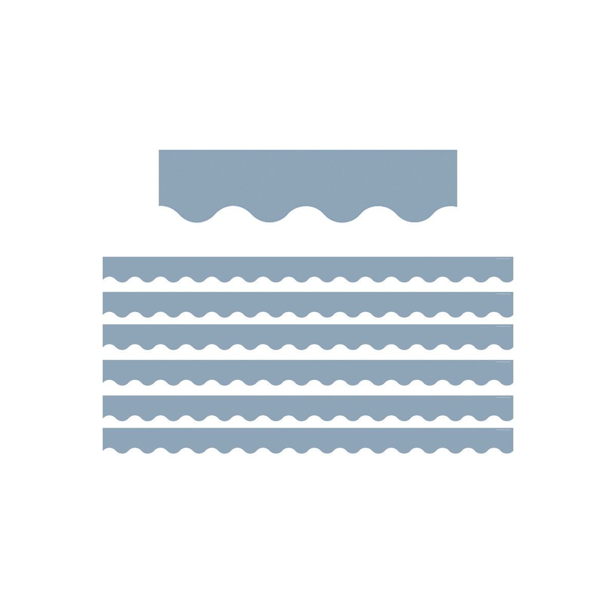 Use this cottage blue scalloped border trim to liven up your classroom! Create fresh looks for bulletin boards, windows, walls, and class projects. Mix and match with coordinating products (stickers, notepads, awards, etc.) for a classroom theme. Each pack has 12 pieces (3" x 35") for a total length of 35 feet of trim! Sold as 6 packs for a total of 72 pieces (210 feet).