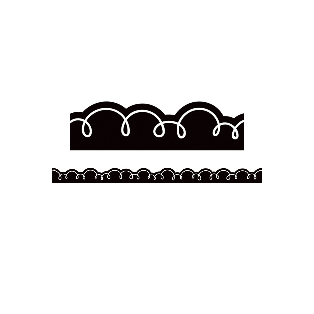 Use this black with white squiggles border trim to liven up your classroom! Create fresh looks for bulletin boards, windows, walls, and class projects. Mix and match with coordinating products (stickers, notepads, awards, etc.) for a classroom theme. Each pack has 12 pieces (3" x 35") for a total length of 35 feet of trim!