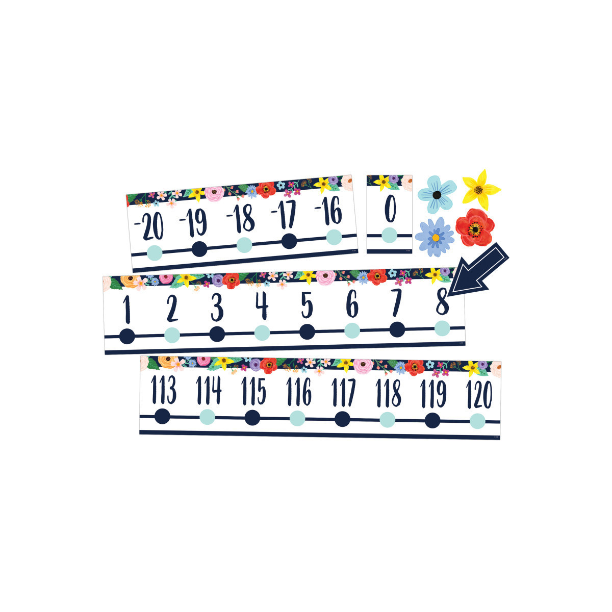 - Features: 19 number line pieces, 4 flower accents and 1 arrow accent, Bulletin board guide with set-up and activity suggestions.