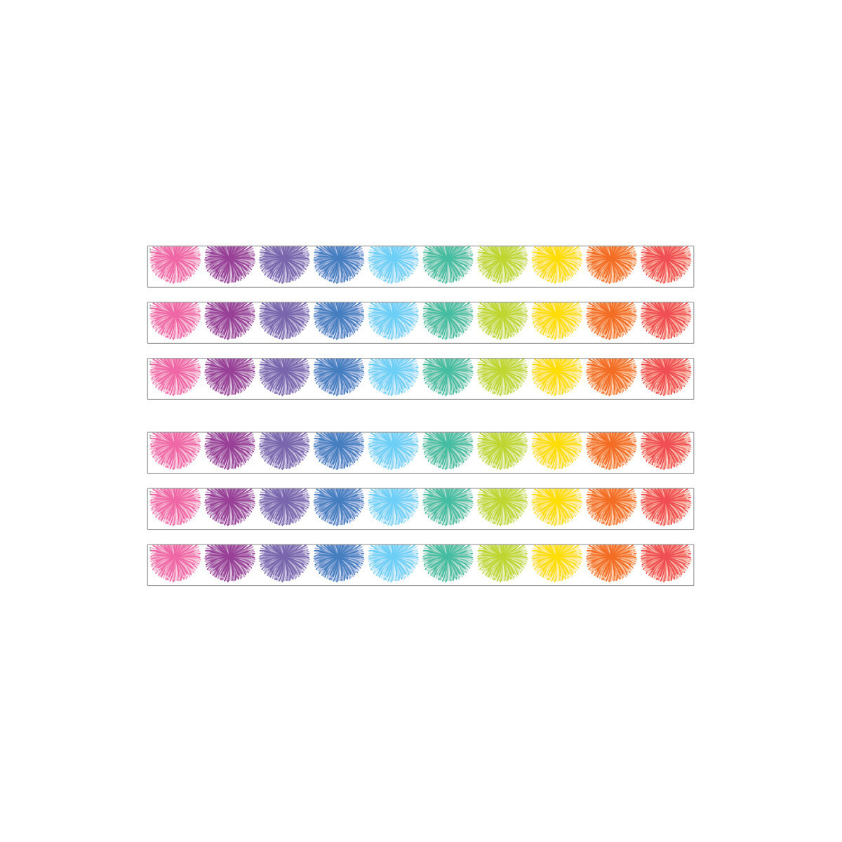 Use this colorful poms border trim to liven up your classroom! Create fresh looks for bulletin boards, windows, walls, and class projects. Mix and match with coordinating products (stickers, notepads, awards, etc.) for a classroom theme. Each pack has 12 pieces (2-3/4" x 35") for a total length of 35 feet of trim! Sold as 6 packs for a total of 72 pieces (210 feet).