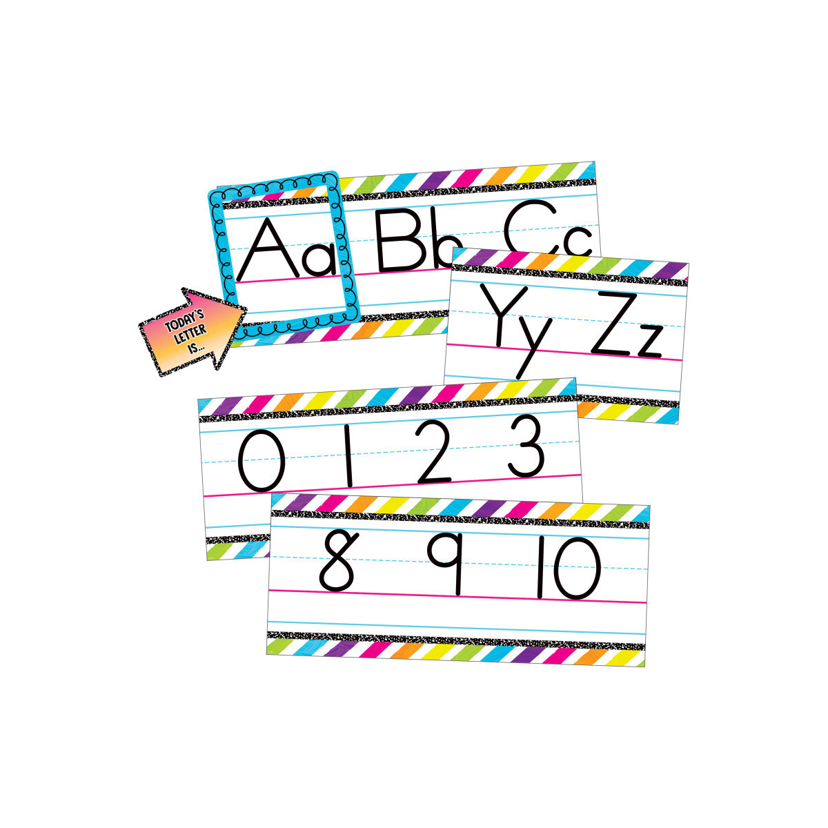Features: Alphabet line, Number line 0–10, 1 "Today's Letter is . . ." arrow accent, 1 frame accent to highlight a letter, Bulletin board guide with set-up and activity suggestions, Shiny protective coating for durability