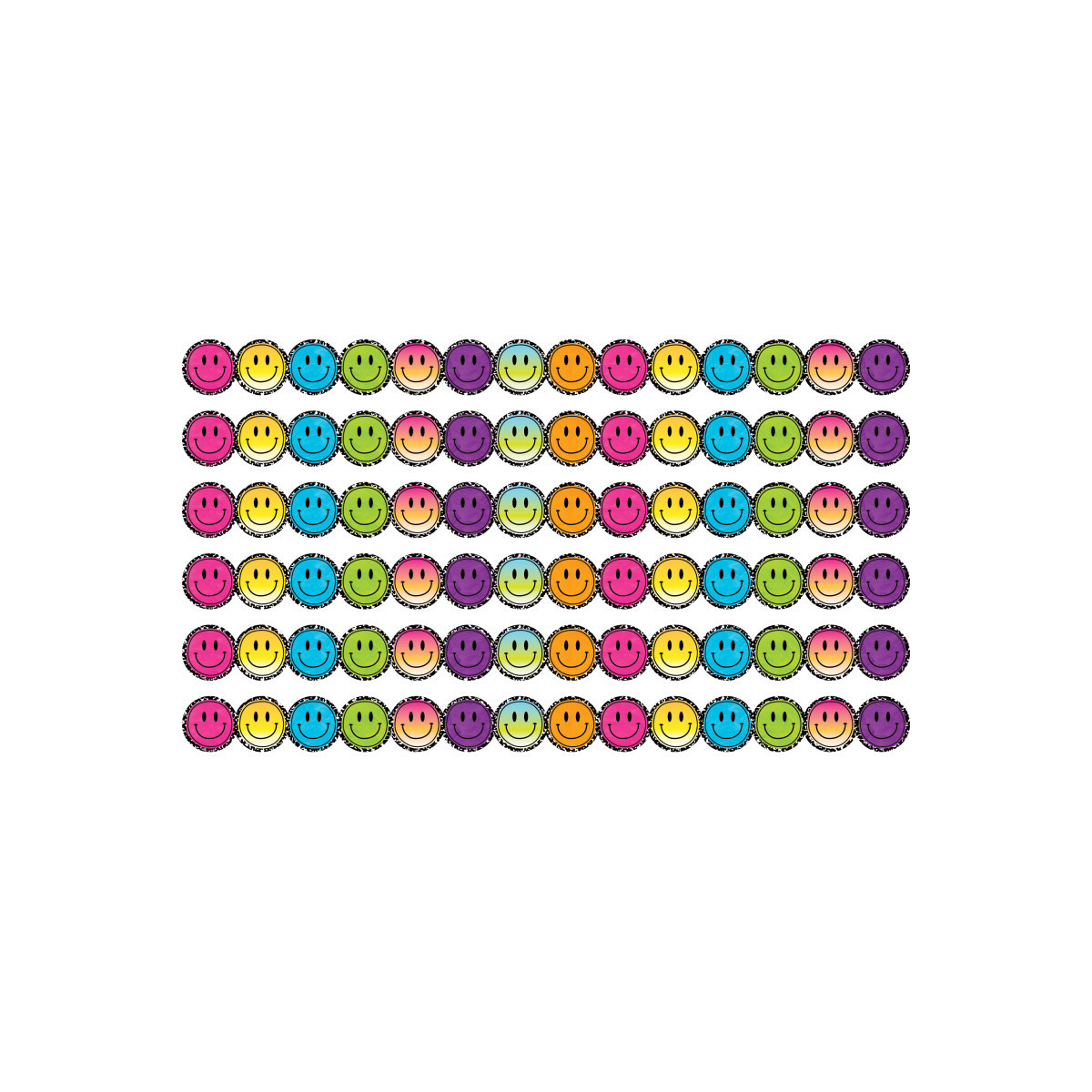 Use colorful border trim to liven up your classroom! Create fresh looks for bulletin boards, windows, walls, and class projects. Mix and match with coordinating products (stickers, notepads, awards, etc.) for a classroom theme. Each pack includes 12 pieces, about 35 feet of trim per pack. Sold as 6 packs for a total of 72 strips (210 feet).