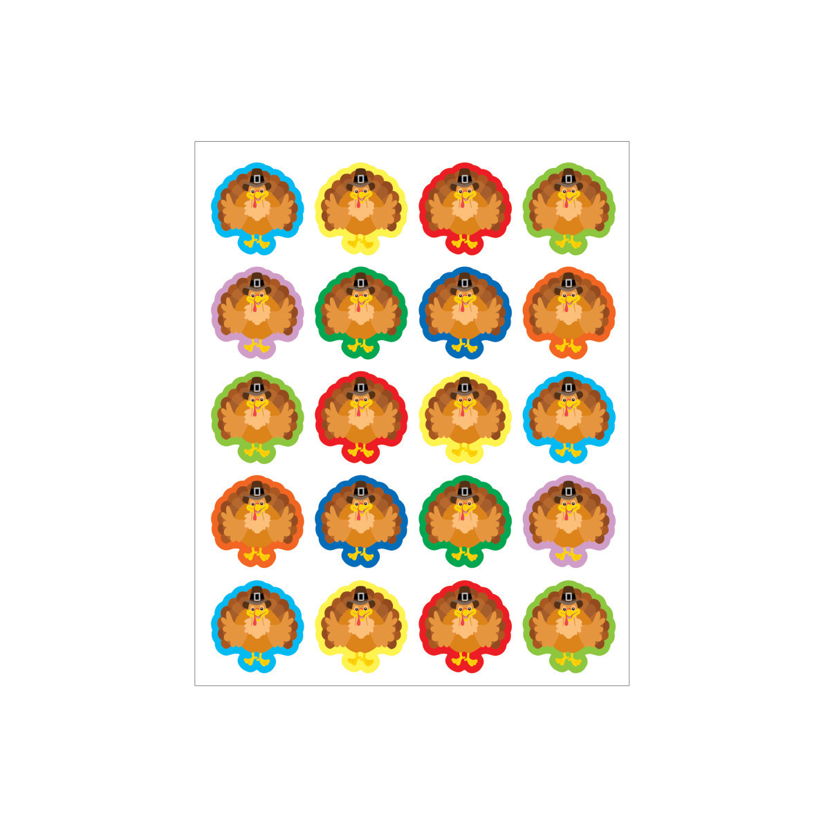 Get ready for Thanksgiving with this delightful turkey sticker pack! Perfect for adding a festive touch to your holiday crafts, cards, and decorations, these stickers come in eight vibrant colors. With a total of 72 stickers in 8 colors, you'll have plenty to share and use for all your Thanksgiving projects. These stickers are acid-free and lignin-free, ensuring they are safe for scrapbooking and preserving memories. Stickers measure 1-1/4" x 1-1/4". Bring a touch of Thanksgiving cheer to your creations with these charming turkey stickers!