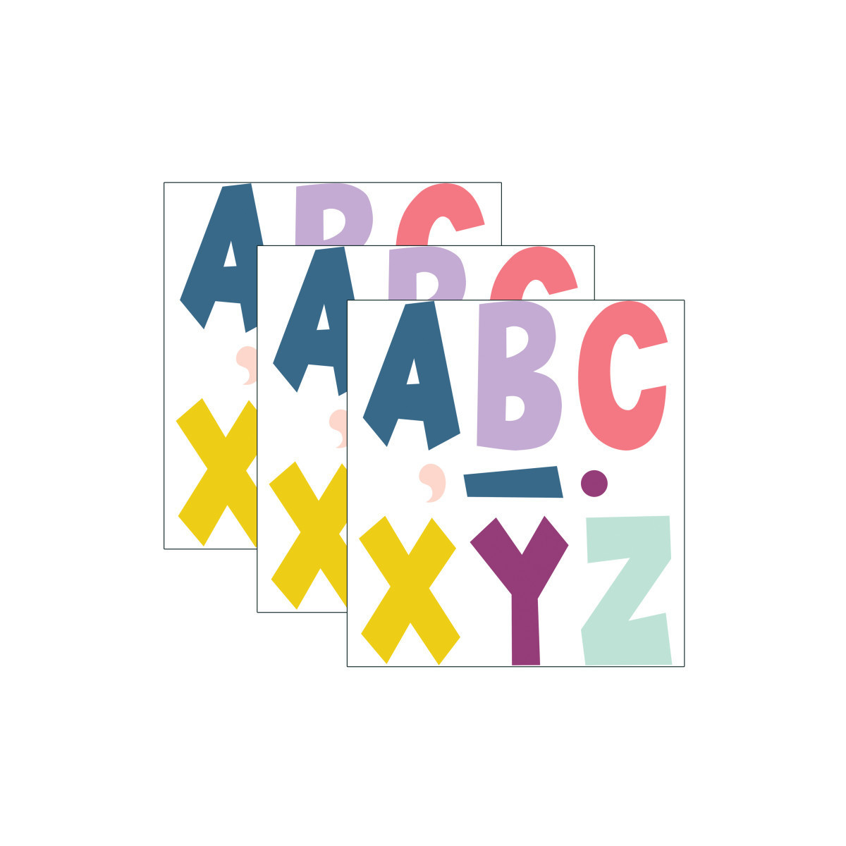 Use big 7" Fun Font letters for the “fun” way to display your message! Each pack includes 120 pieces, 96 uppercase and 24 punctuation pieces. Sold as 3 packs for a total of 360 pieces.