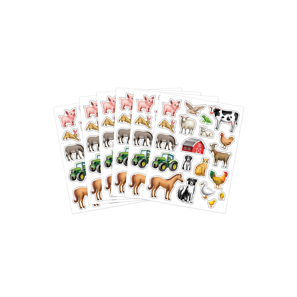 Harvest a bounty of charm for your projects with our Farm sticker set, showcasing the endearing world of barnyard animals, tractors, and country life, where playful pigs, curious cows, and spirited roosters come to life, turning each creation into a rustic masterpiece of down-home delight. Each sticker is acid-free & lignin-free and measures about 2-1/2" x 1/2". Each pack includes 120 stickers in 20 designs.
