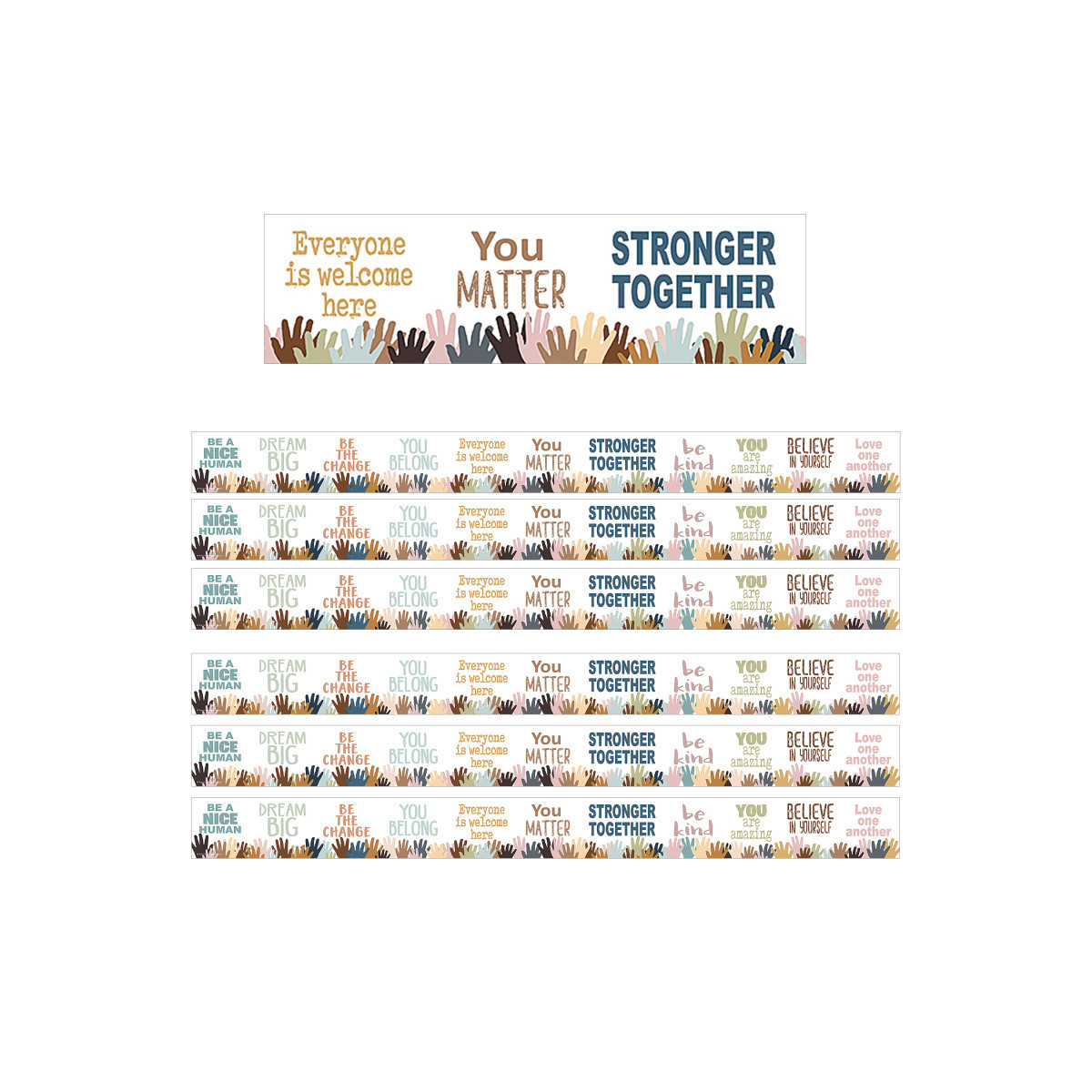 Teacher Created Resources® Everyone is Welcome Helping Hands Straight Border Trim, 35 Feet Per Pack, 6 Packs
