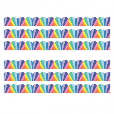 Use this fun and colorful border trim to liven up your classroom! Create fresh looks for bulletin boards, windows, walls, and class projects. Mix and match with coordinating products (stickers, notepads, awards, etc.) for a classroom theme. Strips measure 35" x 3". Each pack includes 12 pieces for a total of 35 feet. Sold as 6 packs for a total of 72 strips (210 feet) total.