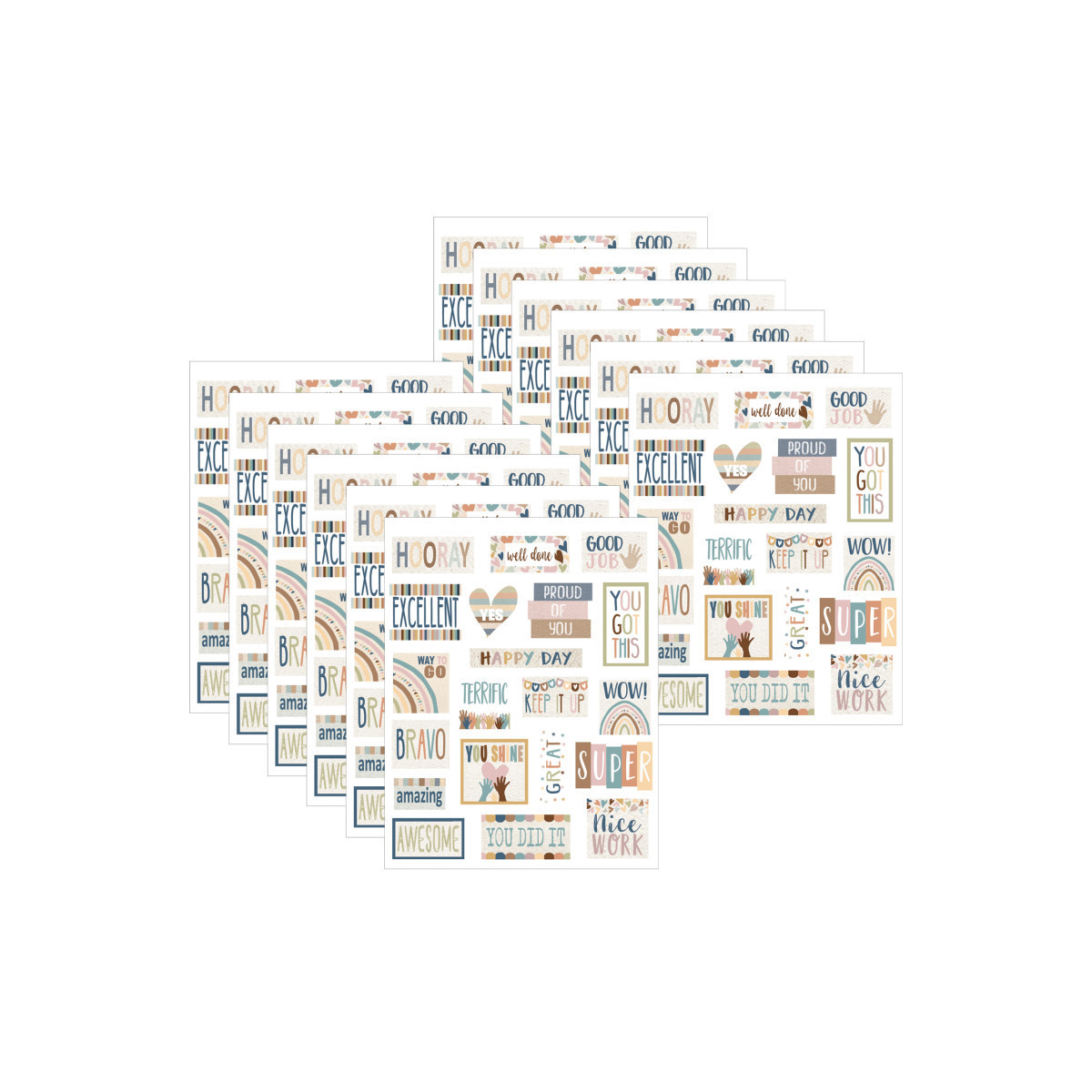 These cute, colorful stickers featuring inspirational messages help spotlight good behavior, boost motivation, and make good habits stick! Great on homework, incentive charts, and more. These stickers are nontoxic, acid-free and photo-safe. Stickers vary from about 1-3/4" to 1/2". Each pack includes 120 stickers in 20 designs. Sold as 12 packs for a total of 1440 stickers.