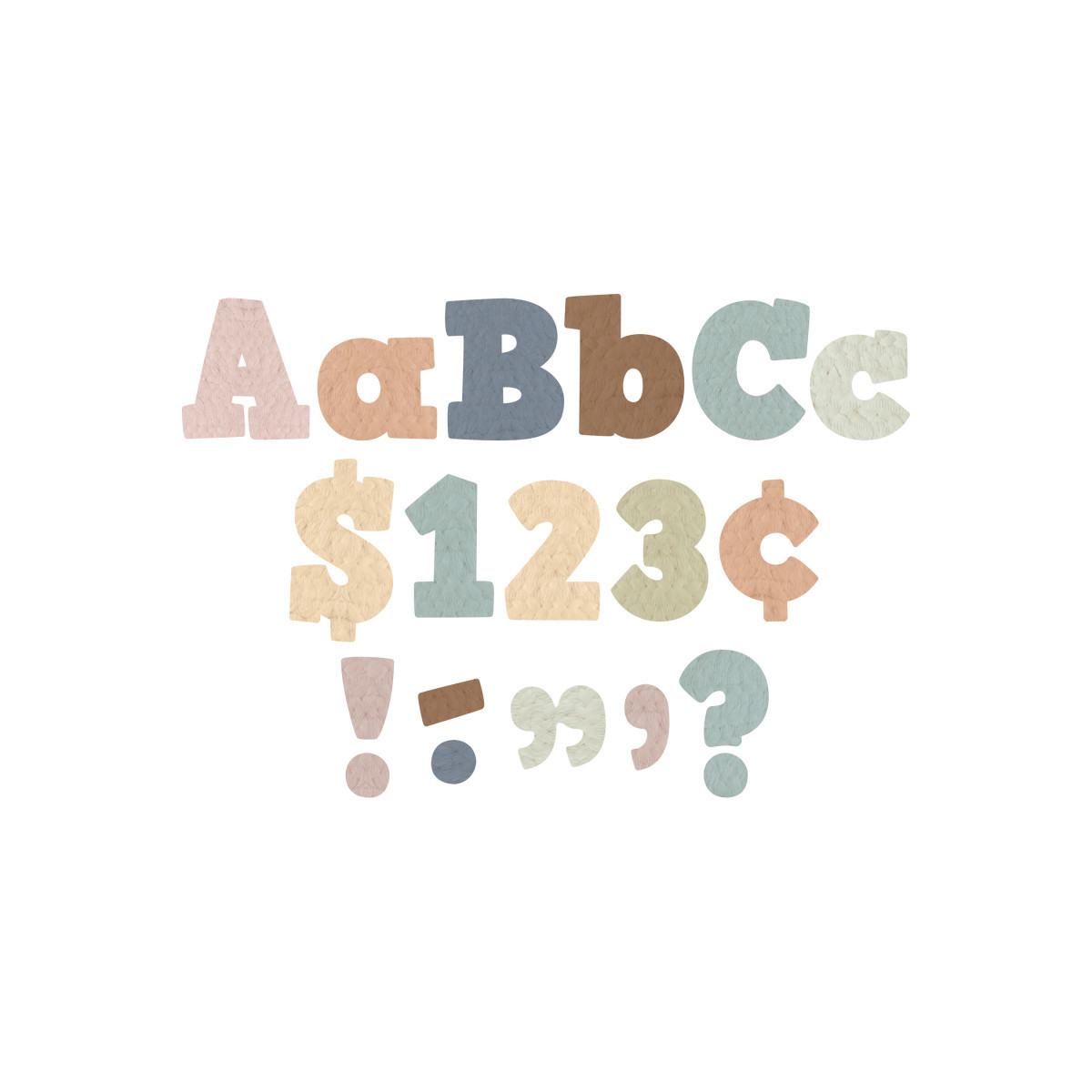 Use these 4" letters to create bulletin boards, classroom centers, signs, banners, and other displays. They punch out easily and are coated for durability. The colors and designs coordinate with popular decorative products from Teacher Created Resources. Each pack includes 230 total pieces: 156 letters, 20 numbers 0-9, 40 punctuation marks and 14 Spanish accent marks.