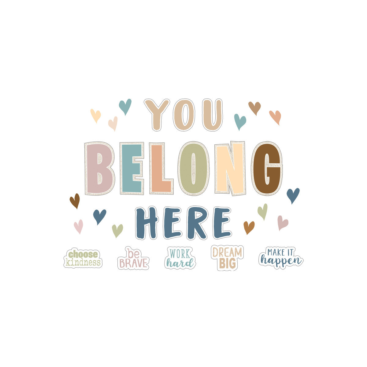 The largest letter measures about 9" x 15-1/2", making it a bold and eye-catching addition to your classroom decor. The colorful design will motivate and encourage your students to learn, and the inclusive message will promote a sense of belonging.