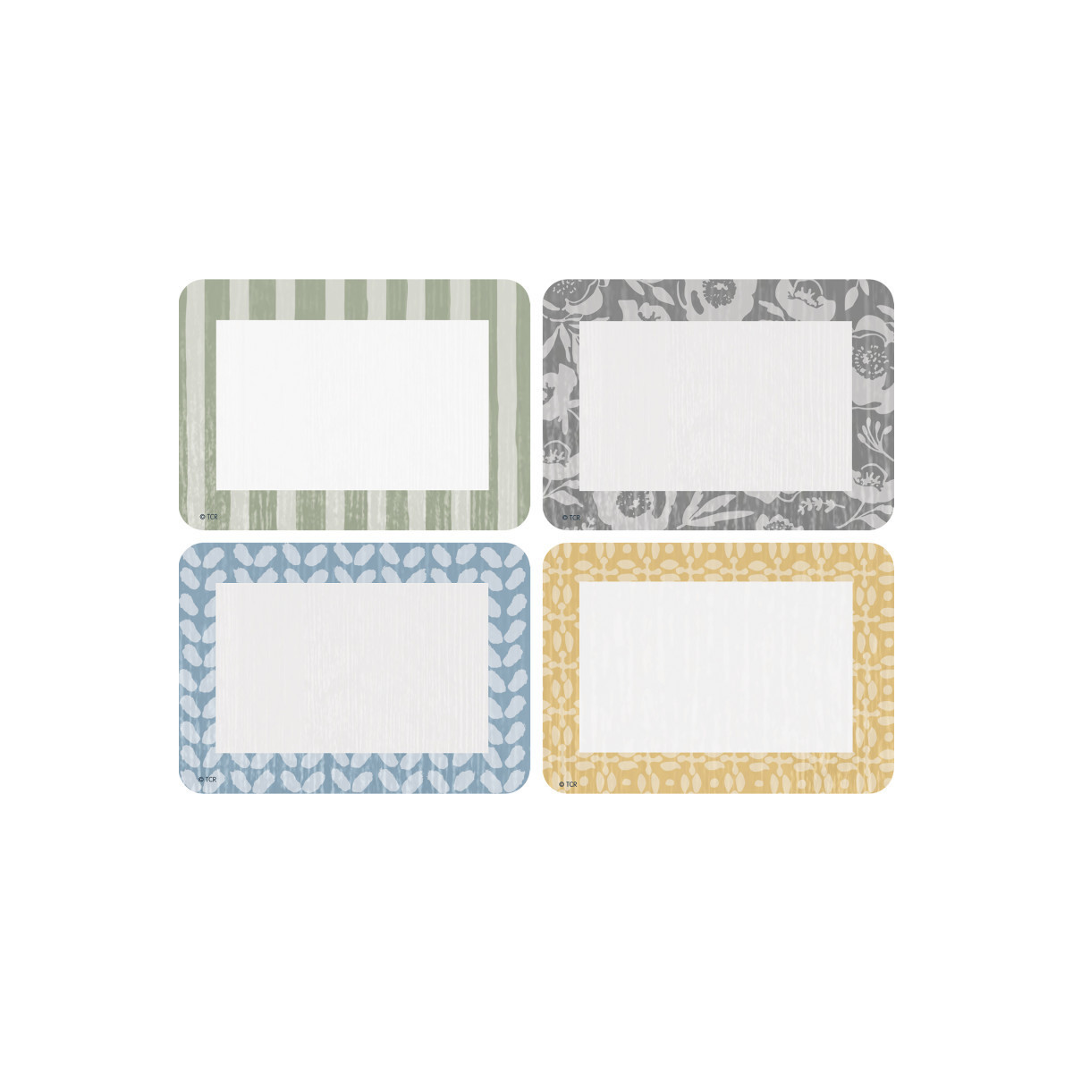 Perfect for name tags, labels, award badges, parties, field trips, first days of school, parent visitations, student portfolios, cubbies, gift tags, and scrapbooking. Students and staff love these! Measures 3-1/2" x 2-1/2". Each pack includes 36 pieces in 4 designs.