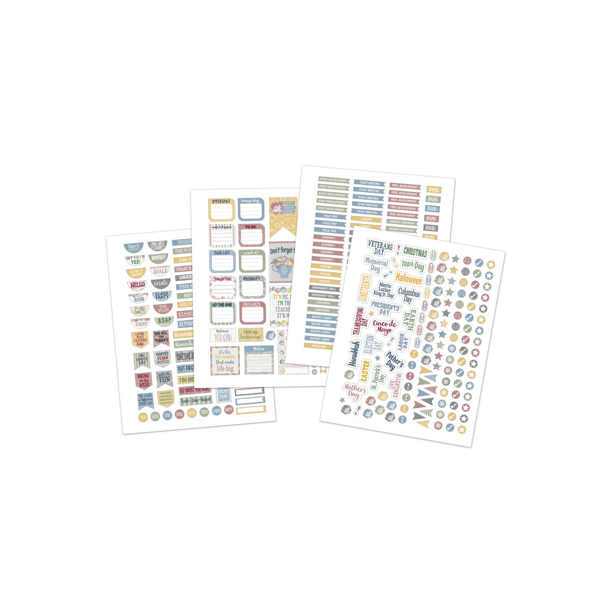The ideal lesson planner for your highly organized teacher era! Keep up to 40 weeks of daily lesson plans in one convenient book. This book includes substitute teacher information, student roster sheets, and memorable quotations to use and discuss throughout the year. Twelve large monthly planning calendar spreads are also included for year-long lesson planning as well as for scheduling appointments, conferences, and events. The lesson planner also includes a variety of colorful stickers to use throughout the year. Whether you need to prioritize the day’s events, add weekly reminders, highlight something special, or simply provide a bit of inspiration, these cheerful stickers will keep your lessons beautifully organized. Measures 8-1/2" x 11".
