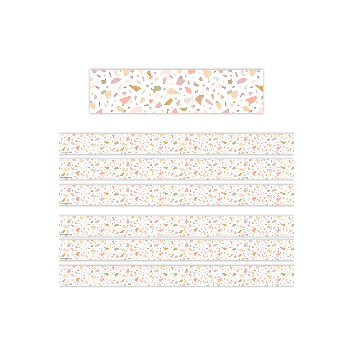 Use this terrazzo tones border trim to liven up your classroom! Create fresh looks for bulletin boards, windows, walls, and class projects. Mix and match with coordinating products (stickers, notepads, awards, etc.) for a classroom theme. Each pack has 12 pieces (3" x 35") for a total length of 35 feet of trim! Sold as 6 packs for a total of 72 pieces (210 feet).