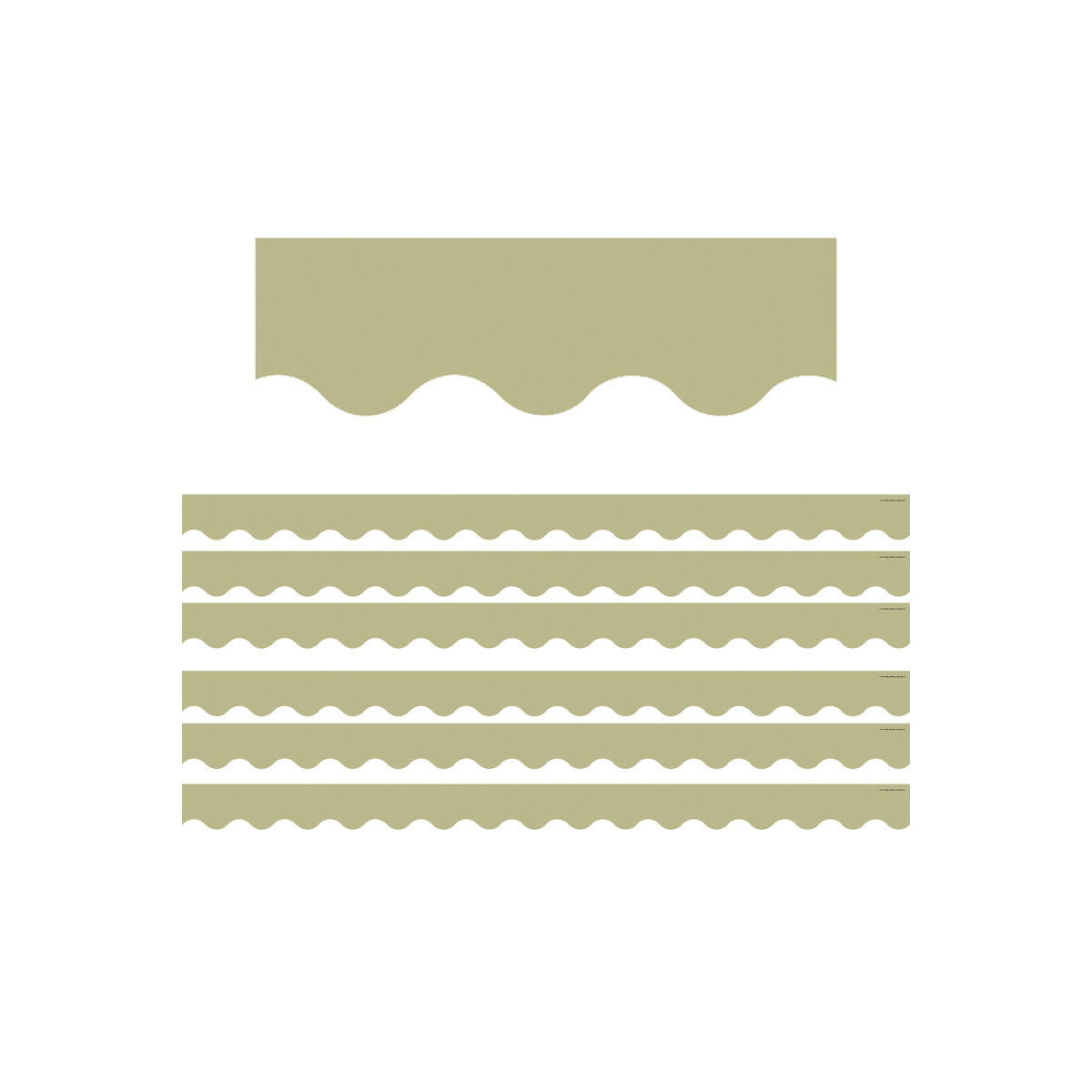 Use this olive green border trim to liven up your classroom! Create fresh looks for bulletin boards, windows, walls, and class projects. Mix and match with coordinating products (stickers, notepads, awards, etc.) for a classroom theme. Each pack has 12 pieces (3" x 35") for a total length of 35 feet of trim! Sold as 6 packs for a total of 72 pieces (210 feet).