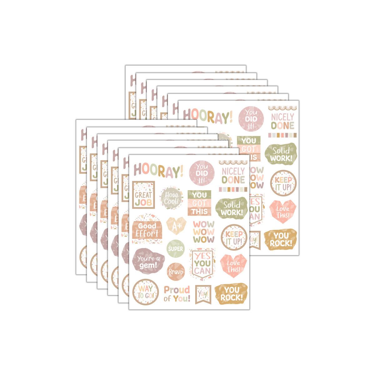 Immerse your projects in a positive vibe with our Terrazzo Tones sticker set, where a stylish blend of vibrant hues frames encouraging messages. Each sticker is acid-free & lignin-free and measures about 2-1/2" x 1/2". Each pack includes 120 stickers in 20 designs. Sold as 12 packs for a total of 1440 stickers.