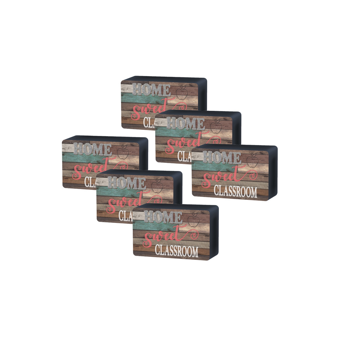 The Home Sweet Classroom Magnetic Whiteboard Eraser sticks to your magnetic whiteboard. Embossed lettering makes the text pop! Measures approximately 4" x 2-1/2" x 7/8". Sold as a pack of 6 erasers.