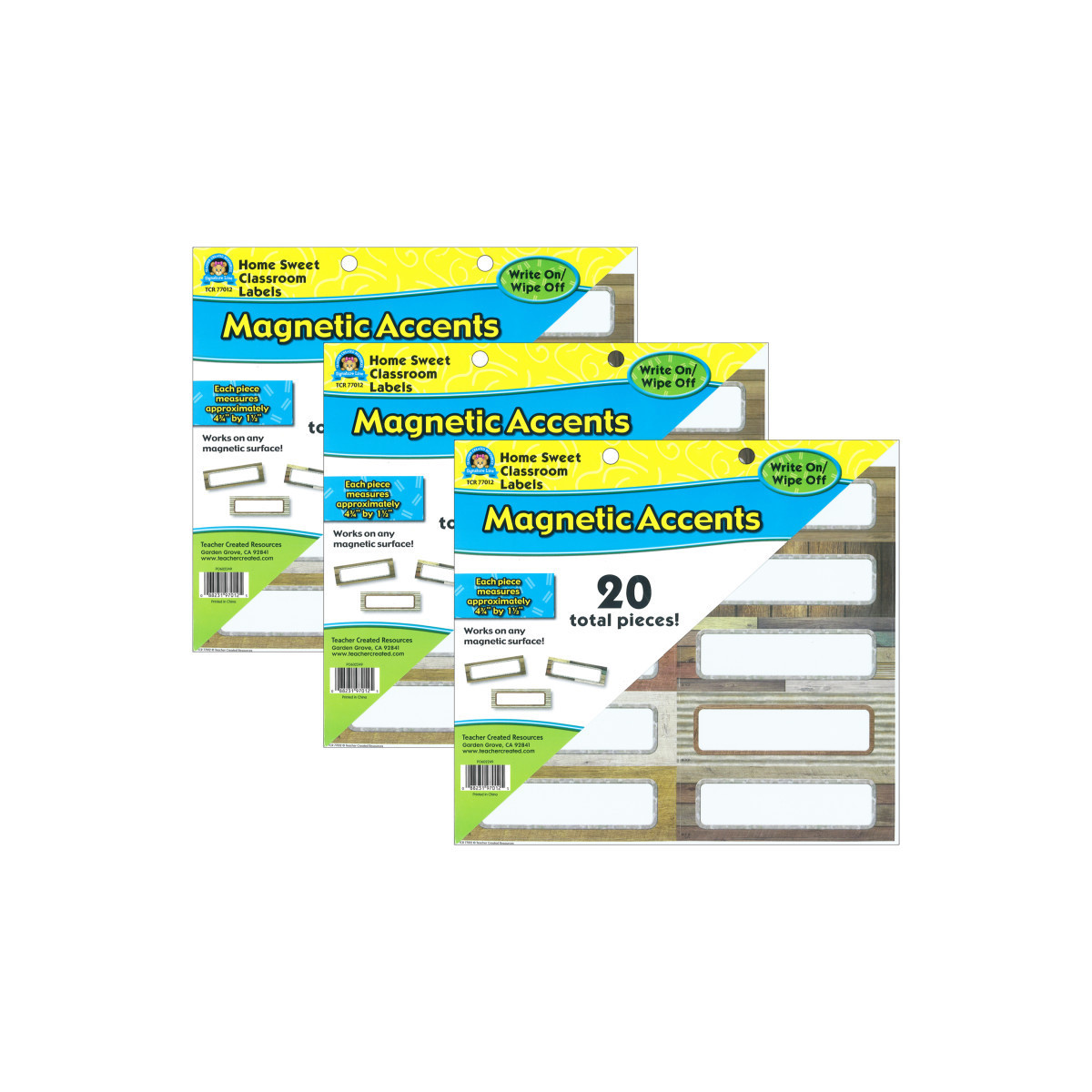 Decorate your whiteboard in a snap with durable, reusable magnetic decor! These Home Sweet Classroom Magnetic Labels add flair to any magnetic receptive surface such as doors, desks, shelving, and bins. Measure 2" x 3-1/2". Each pack includes 20 pieces in 10 designs. Sold as 3 packs for a total of 60 pieces.
