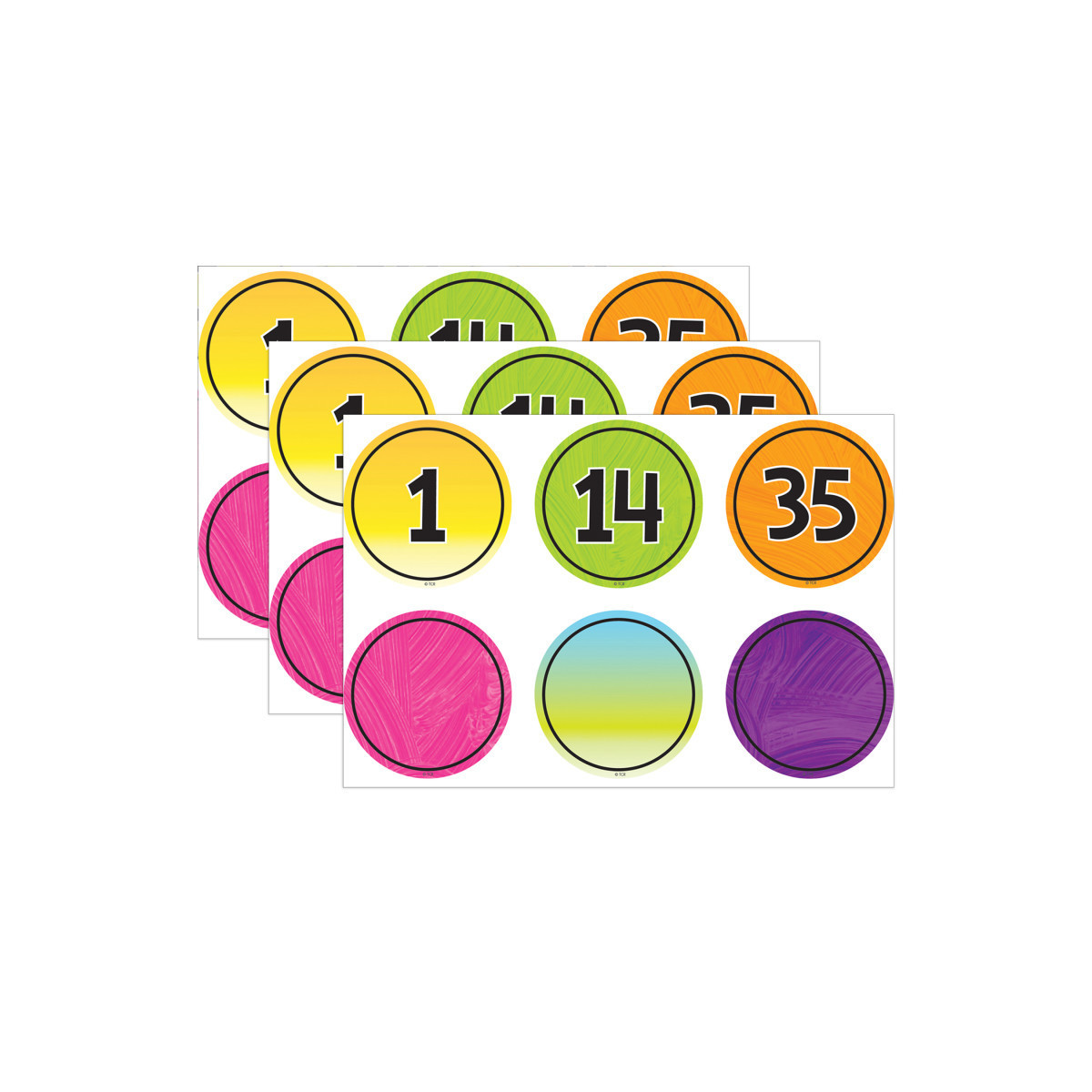 Add flair to any magnetically receptive surface such as doors, desks, shelving and bins. Decorate and educate with durable, reusable magnetic pieces. Great for any daycare or classroom setting. Measures 2-1/4". Each pack includes 42 total pieces: 1-35 plus 7 blank pieces. Sold as 3 packs for a total of 126 pieces.