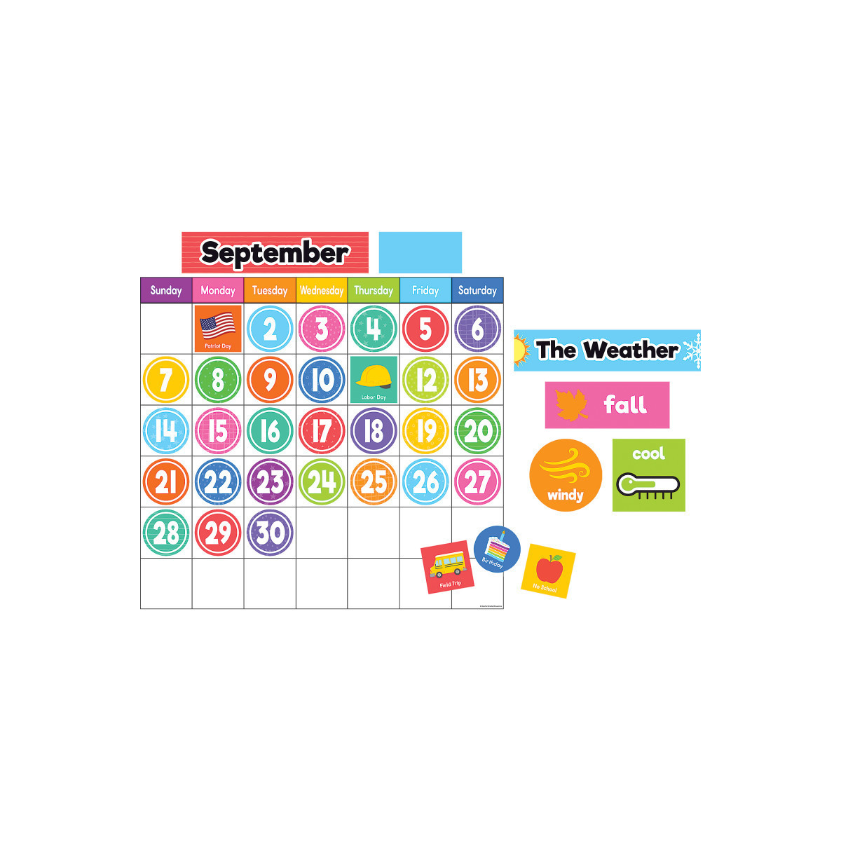 Brighten up your classroom’s whiteboard display with this vibrant Magnetic Calendar Set, a perfect tool for engaging early learners in fun and interactive lessons. Featuring bold, easy-to-read text and colorful illustrations, this set is designed to help students grasp important concepts like dates, seasons, and weather. The set includes a variety of pieces, such as a calendar chart, monthly headers, day and event pieces, as well as a weather and seasons chart. With a total of 93 pieces, it's an ideal resource for teaching essential skills while keeping the learning environment lively and organized. Includes 1 calendar chart measuring 17-1/2" wide and 16" tall, 12 month headers, 31 calendar day pieces, 31 special day/event pieces and 1 blank year card, and 17 season/weather chart pieces.
