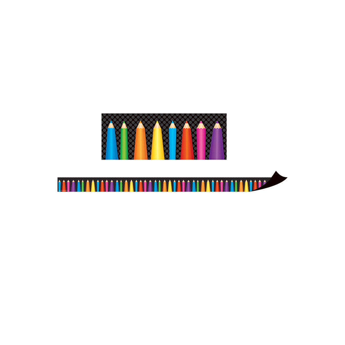 Decorate your whiteboard in a snap with durable magnetic decor! Add flair to other metal surface such as doors, desks, shelving, and bins. Cuts easily with scissors to make your own labels or games pieces. Includes 12 pieces per pack. Each magnetic border is 24" x 1-1/2". Each pack includes 12 pieces for a total of 24 feet.