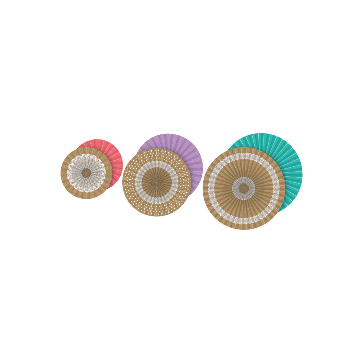 Create the perfect look for your classroom with these Hanging Paper Fans! Coordinate with similar patterns and colors to make a chic environment. Use them to fill empty corners, accent work areas and learning centers, or design fabulous displays around your bulletin boards. Includes 3 fans with a self-adhesive strip and string for hanging.