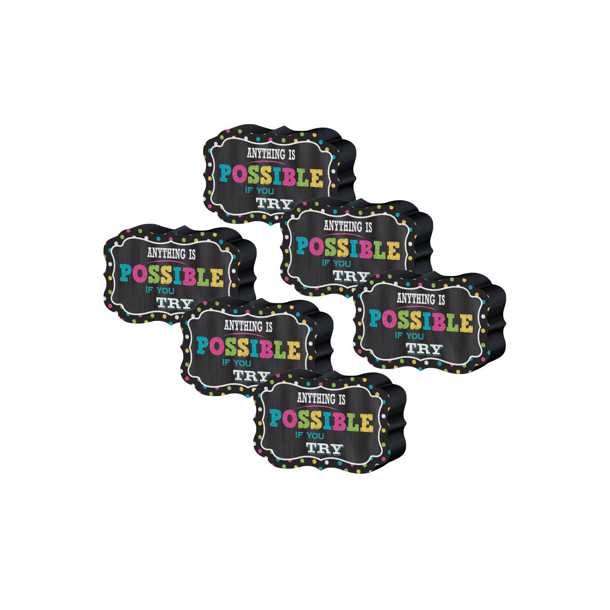 Sticks to your magnetic whiteboard. Embossed lettering makes the text pop! Coordinate with other super hero themed items. Each eraser is approximately 4" x 2.5" x 0.875". Sold as a pack of 6 erasers.