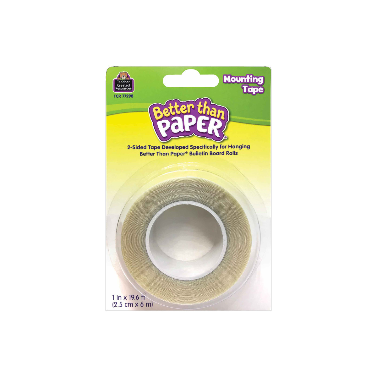 Securely hang your bulletin board rolls with this high-tack double-sided adhesive. This mounting tape is specifically designed to hang Better Than Paper® from virtually any surface! Use it on painted brick, painted walls, fabric bulletin boards, cloth cubical walls, whiteboards, wood trim, plastic surfaces, metal doors, and much more! Also works with butcher paper, and other types of bulletin board paper. PLEASE NOTE: Better than Paper® Mounting Tape is strong and could potentially cause damage when removed from certain surfaces. To protect these surfaces, we recommend using a piece of Mavalus® tape or tape specifically designed not to damage walls as a buffer between the Better than Paper® Mounting Tape and the surface to be protected.
